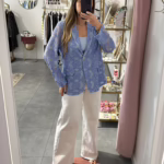 A modelo tem 1,73m e veste o tamanho M/L parte de cima e um 38/40 de parte de baixo.