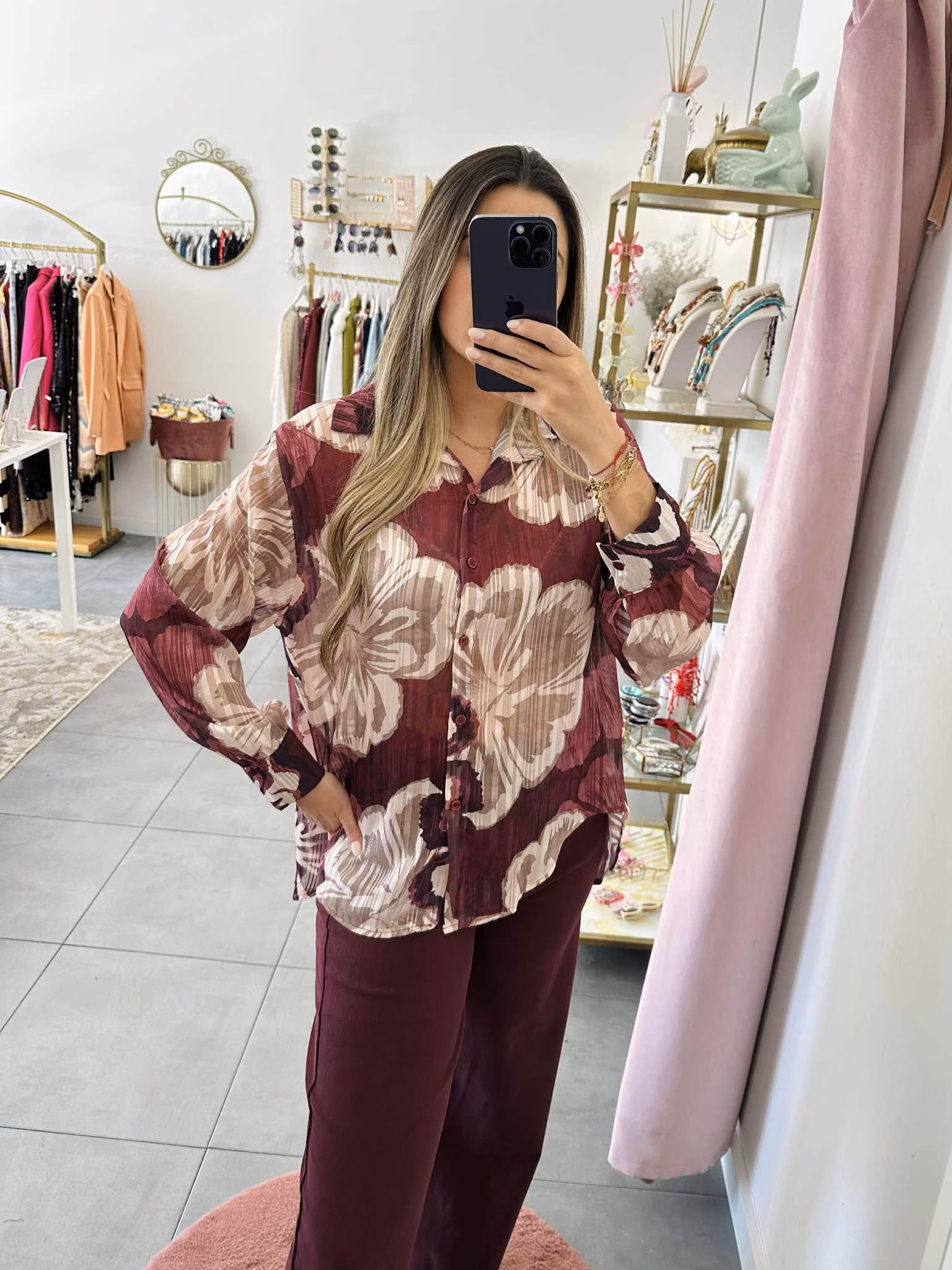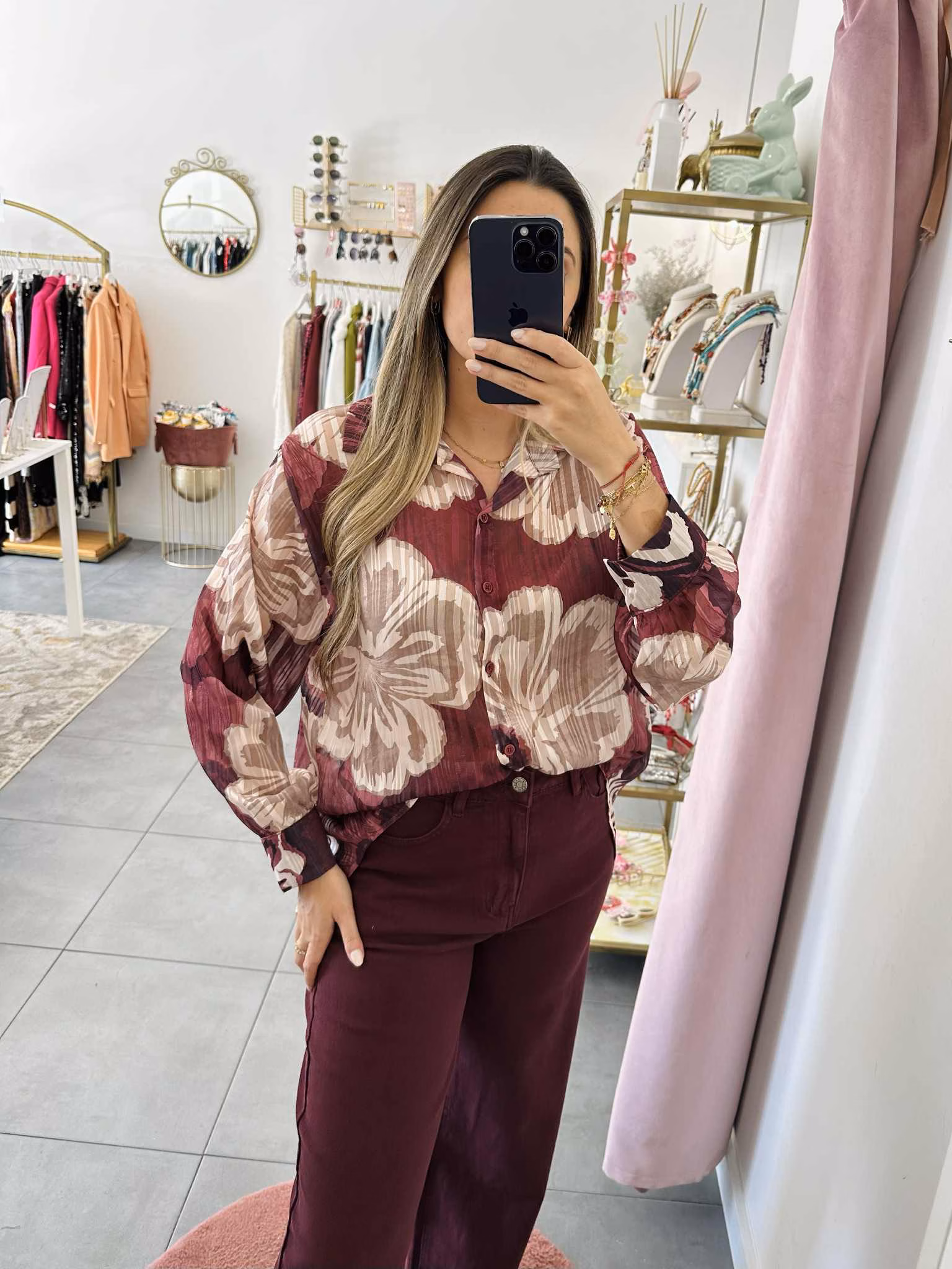 Início  /  Loja  /  Camisas & Blusas, Coleção  /  Blusa Flores Bordo