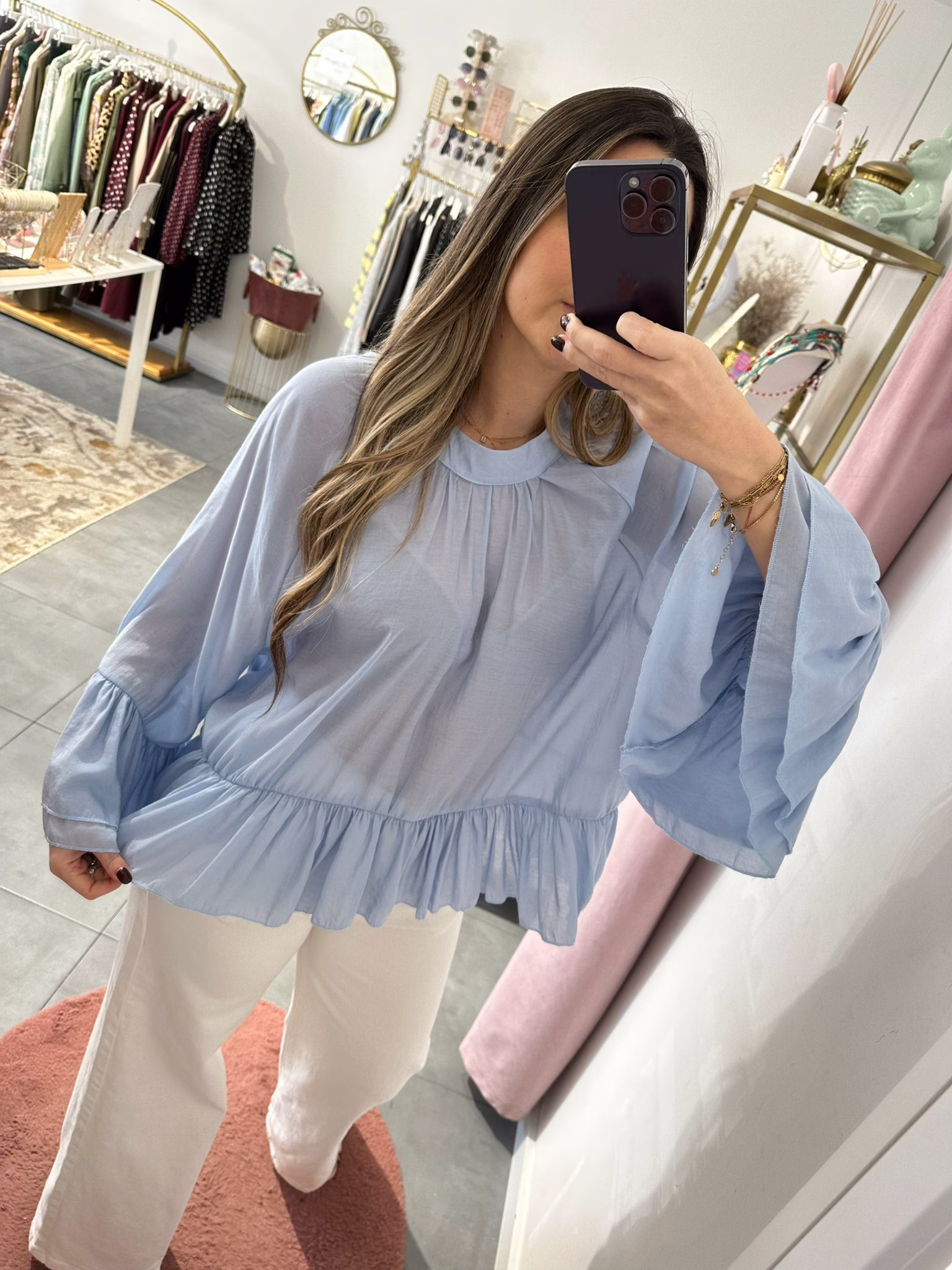É tamanho único, serve de S a 2XL, tem 65cm de cava a cava.