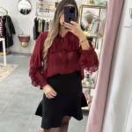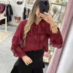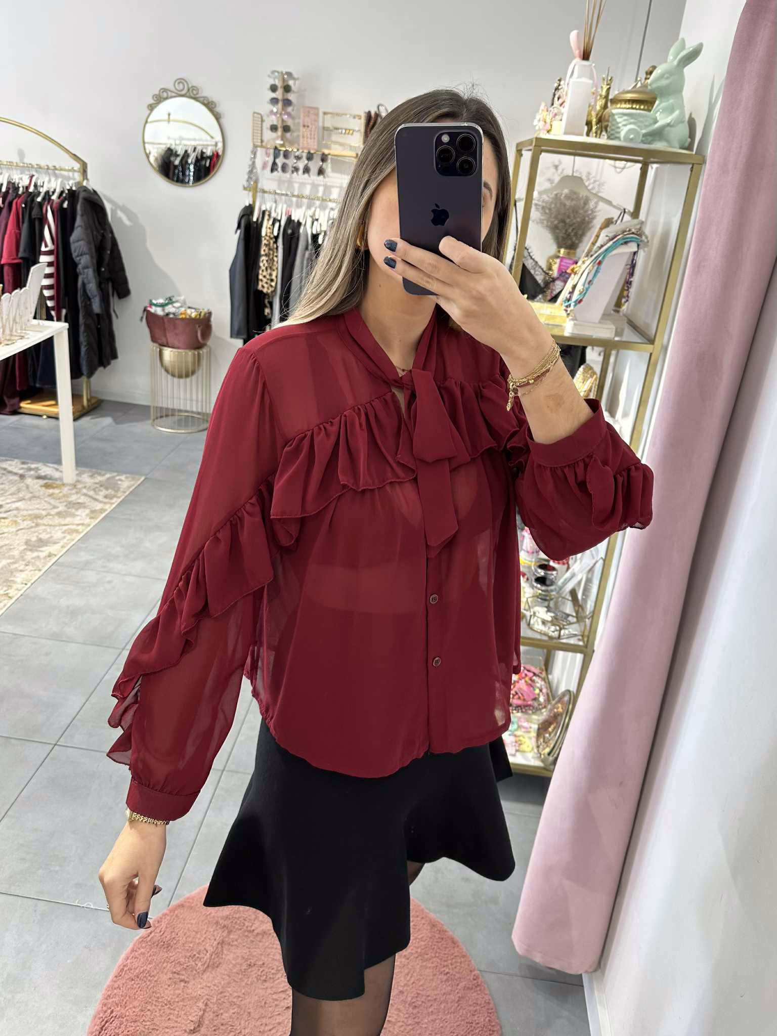 Início  /  Loja  /  Camisas & Blusas, Coleção  /  Blusa Folhos Bordo
