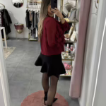 A modelo tem 1,73m e veste o tamanho M/L parte de cima e um 38/40 de parte de baixo.