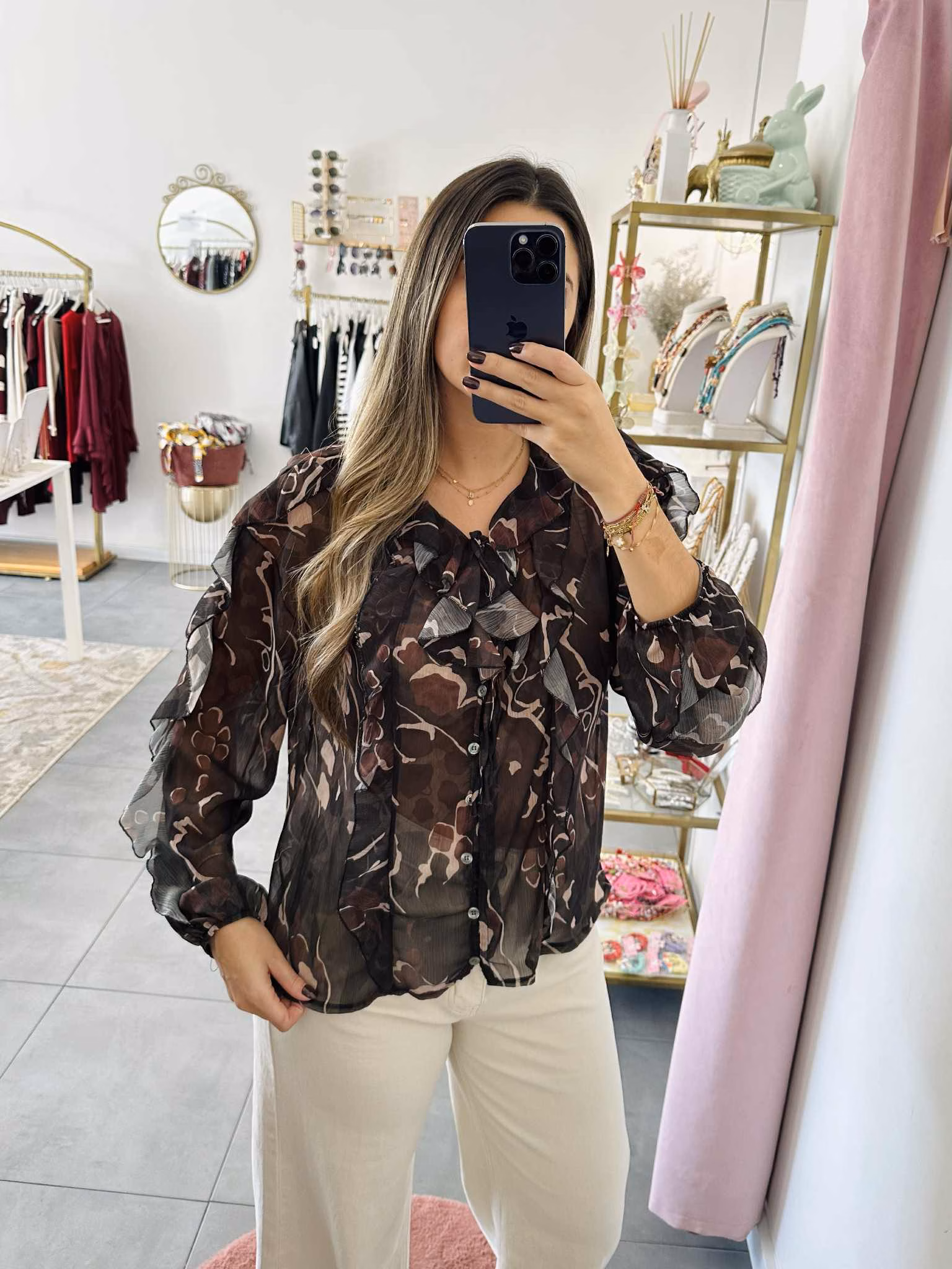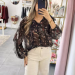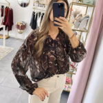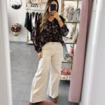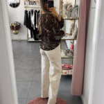 A modelo tem 1,73m e veste o tamanho M/L parte de cima e um 38/40 de parte de baixo.