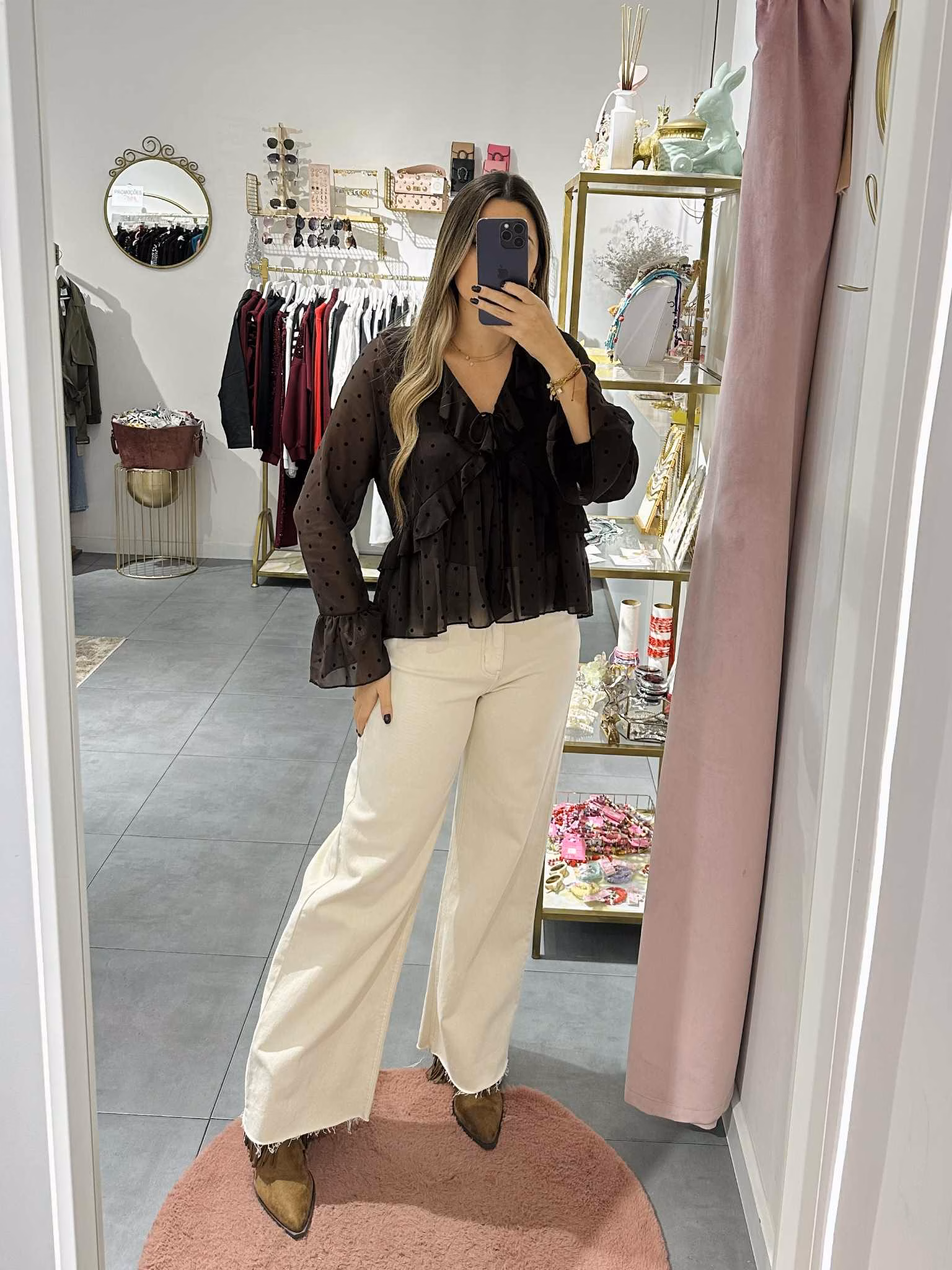 Início  /  Loja  /  Camisas & Blusas, Coleção  /  Blusa Pintinhas Castanha