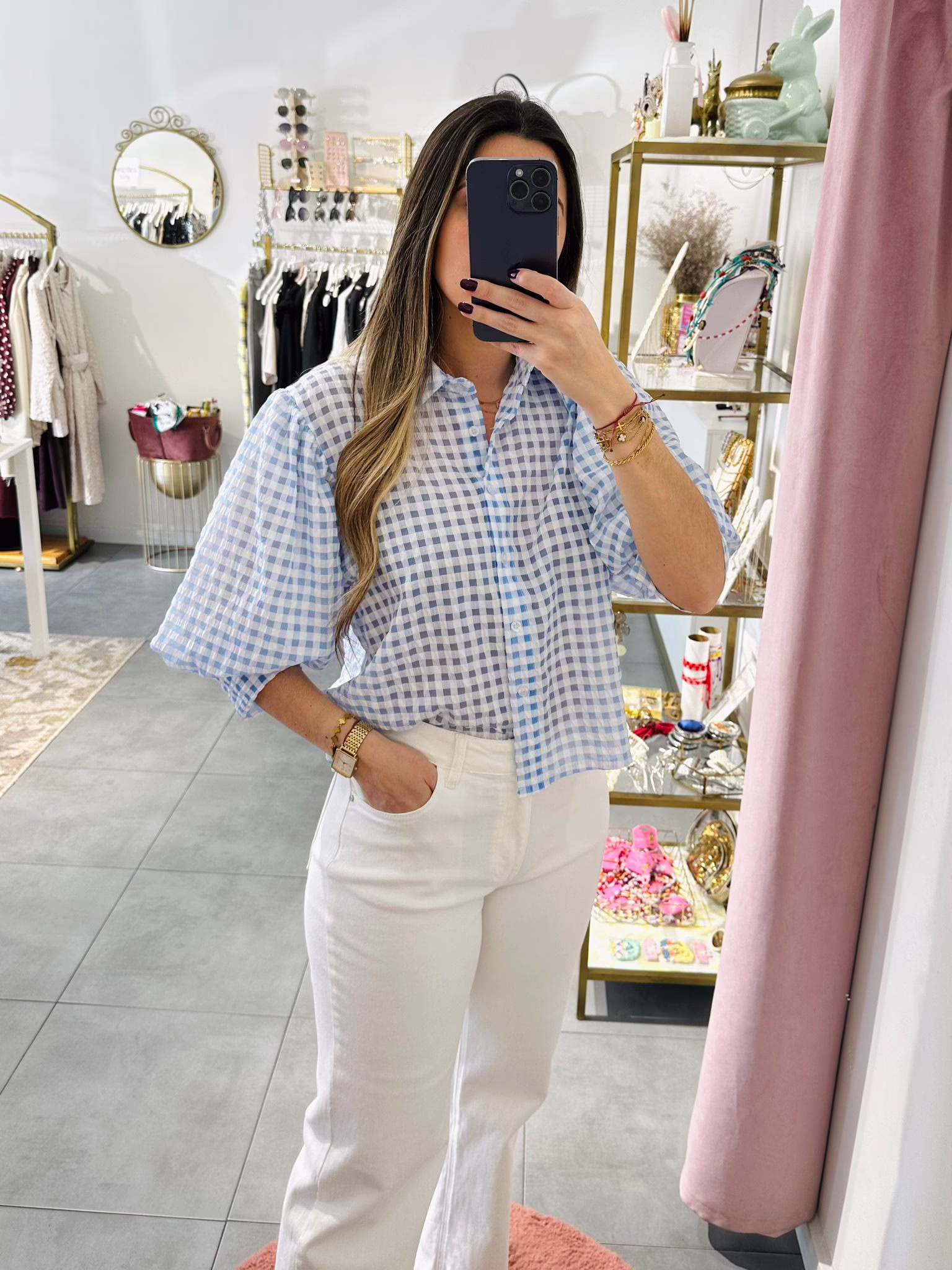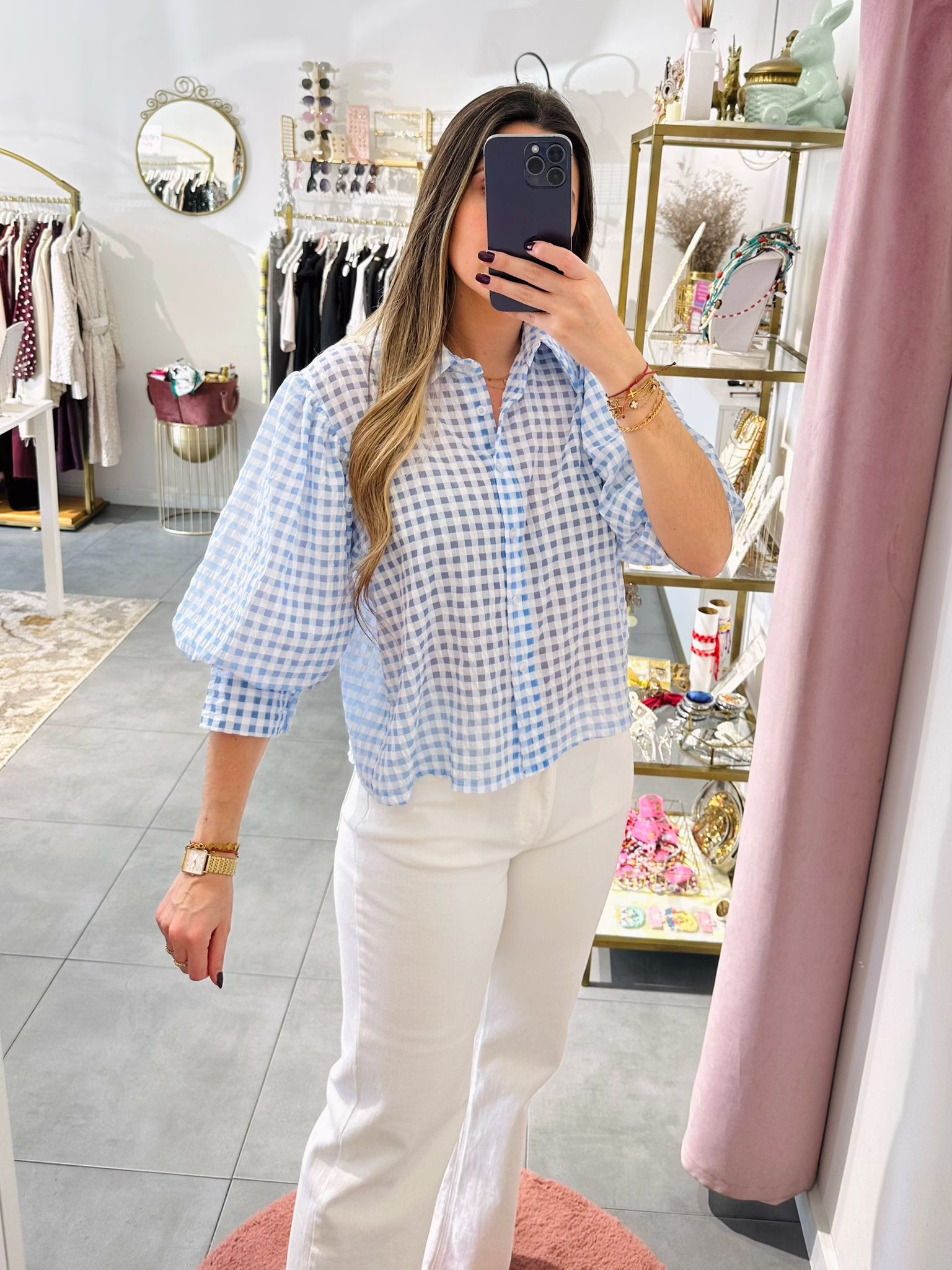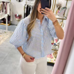Blusa com manga de balão 3/4.