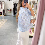 A modelo tem 1,73m e veste o tamanho M/L parte de cima e um 38/40 de parte de baixo.