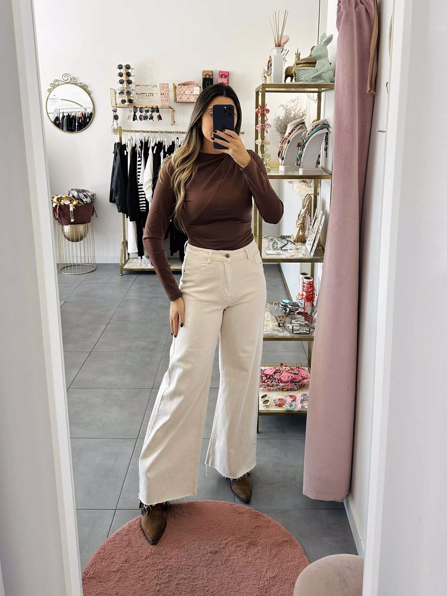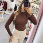 Body em malha de lycra com drapeado e abertura na zona do peito, aperta com molas.
