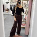 A modelo tem 1,73m e veste o tamanho M/L parte de cima e um 38/40 de parte de baixo.