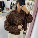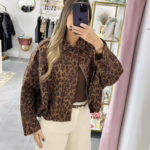 Bomber em pele de pêssego. Aperta com fecho e molas.