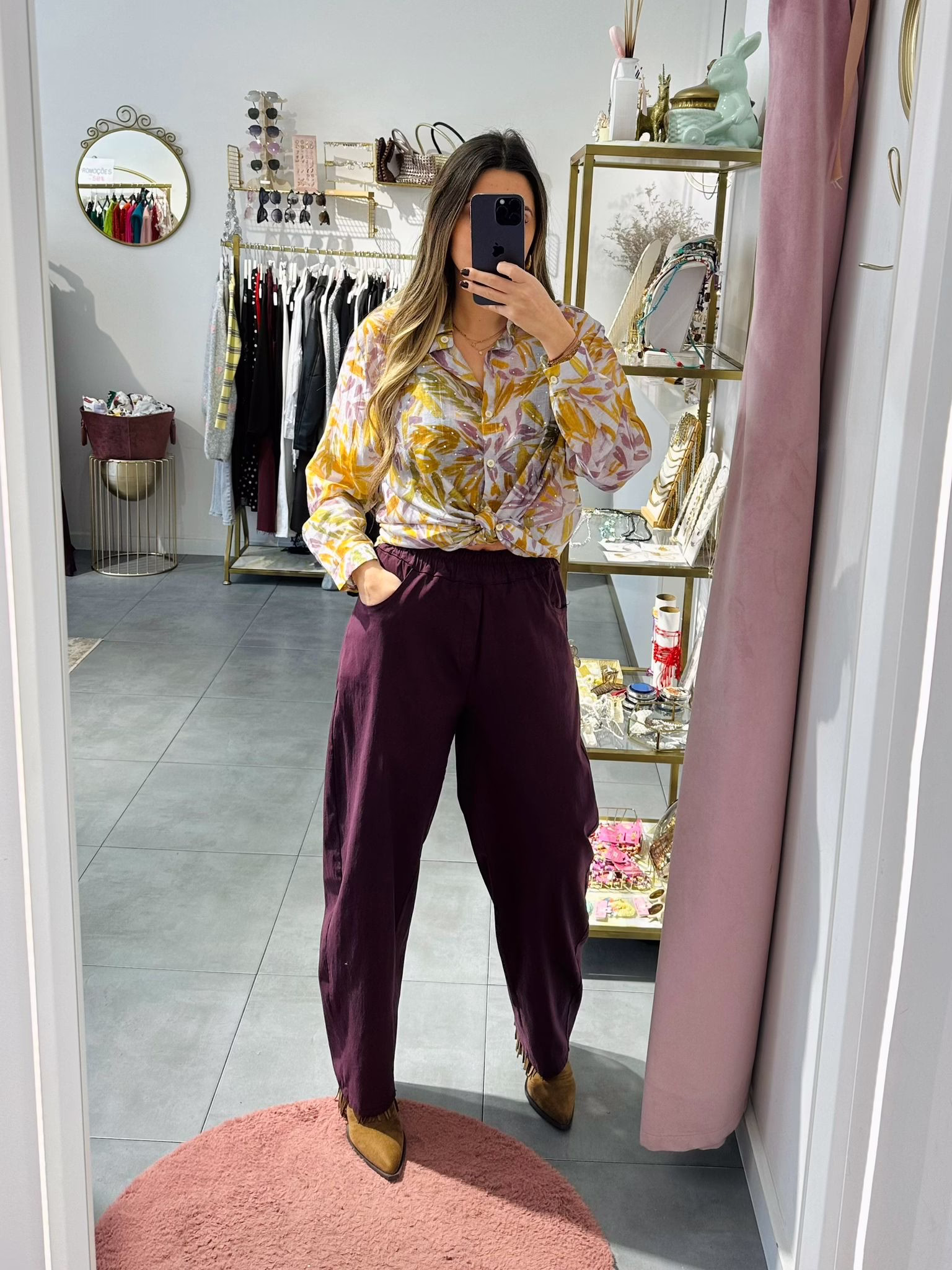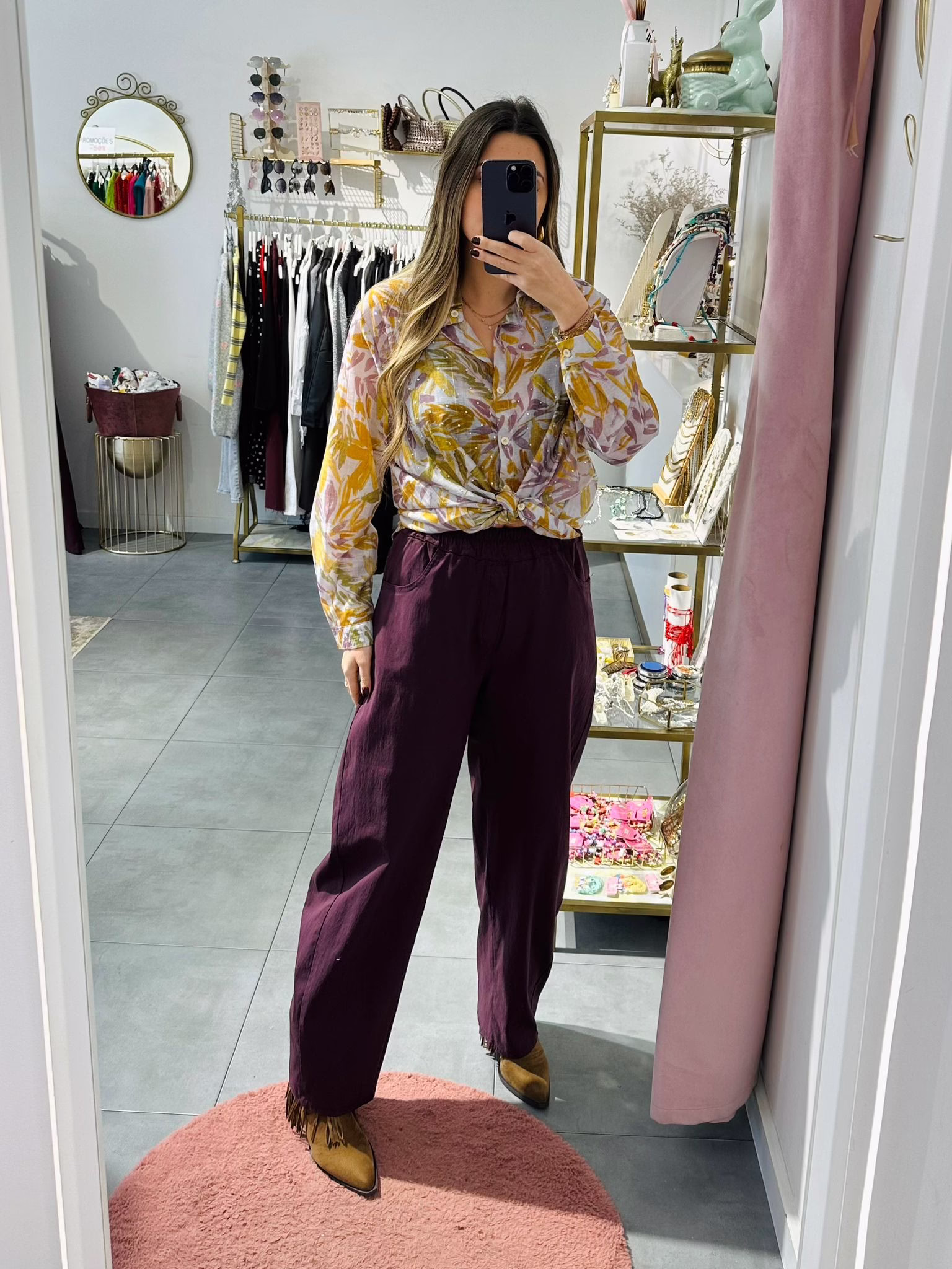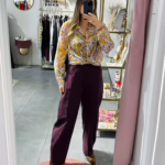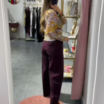 A modelo tem 1,73m e veste o tamanho M/L parte de cima e um 38/40 de parte de baixo.