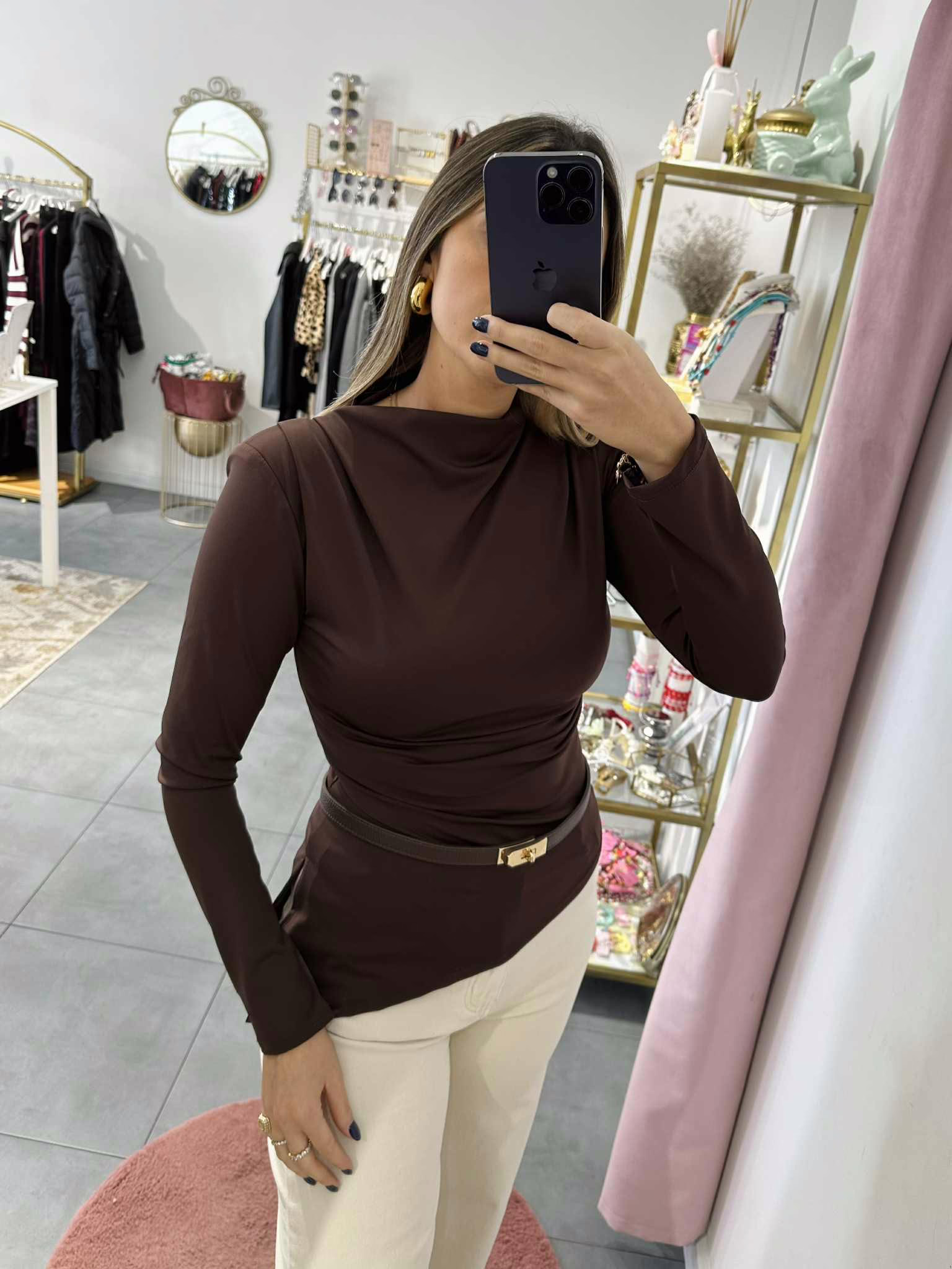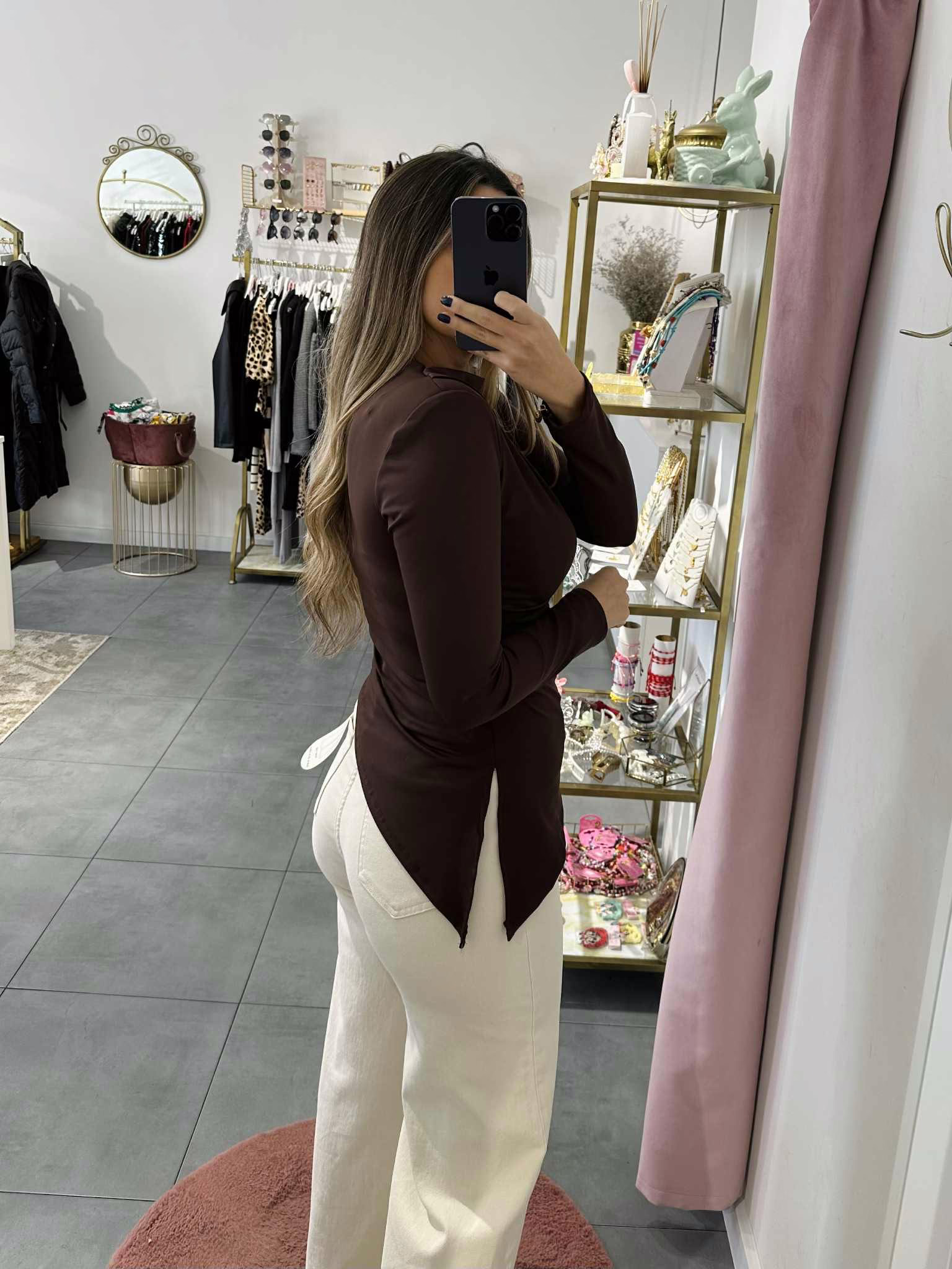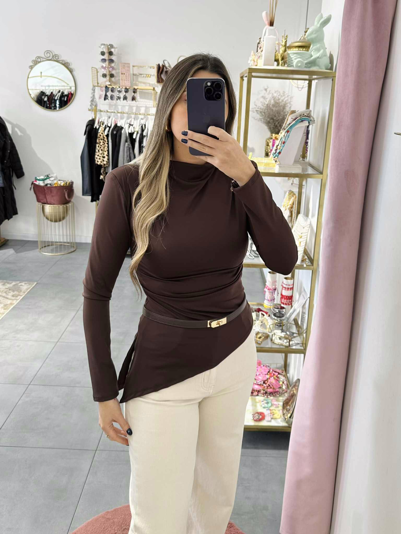 Início  /  Loja  /  Camisolas, Coleção  /  Camisola Assimétrica Castanha