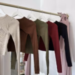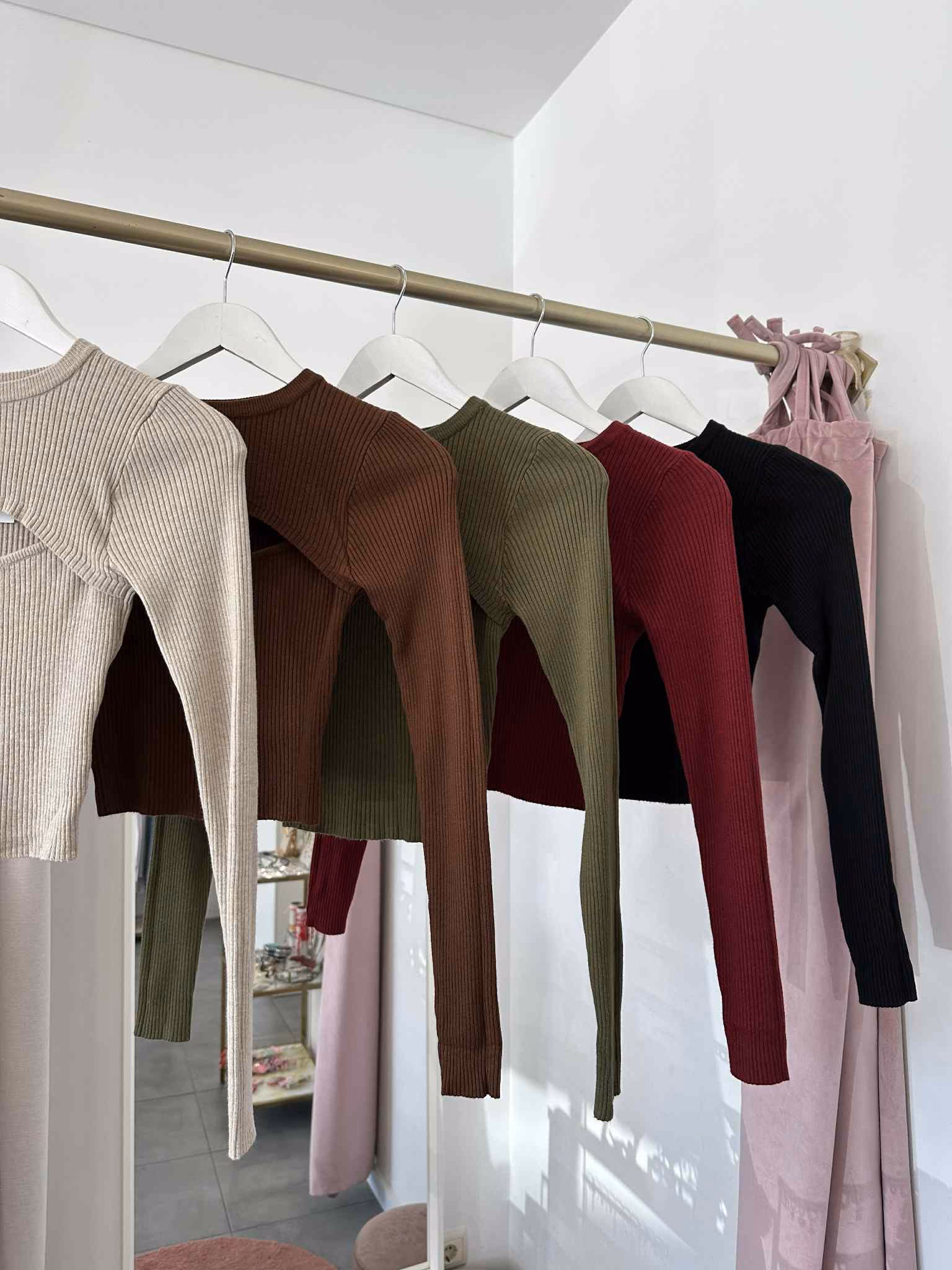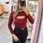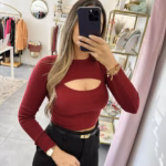 Camisola em malha croped com abertura na zona do peito.