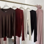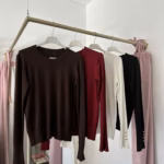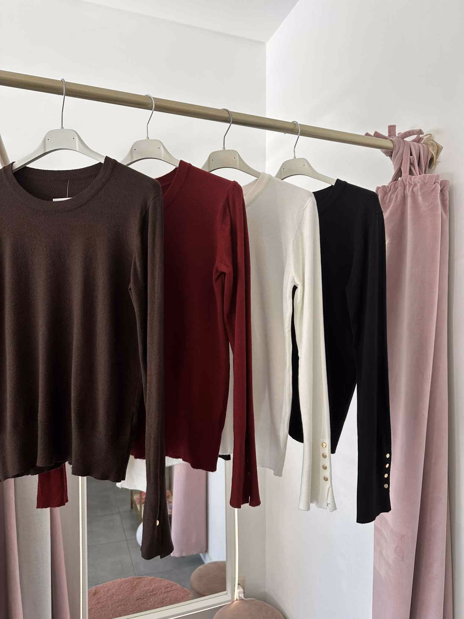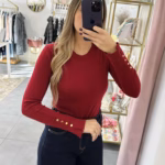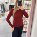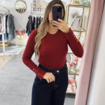 A modelo tem 1,73m e veste o tamanho M/L parte de cima e um 38/40 de parte de baixo.