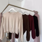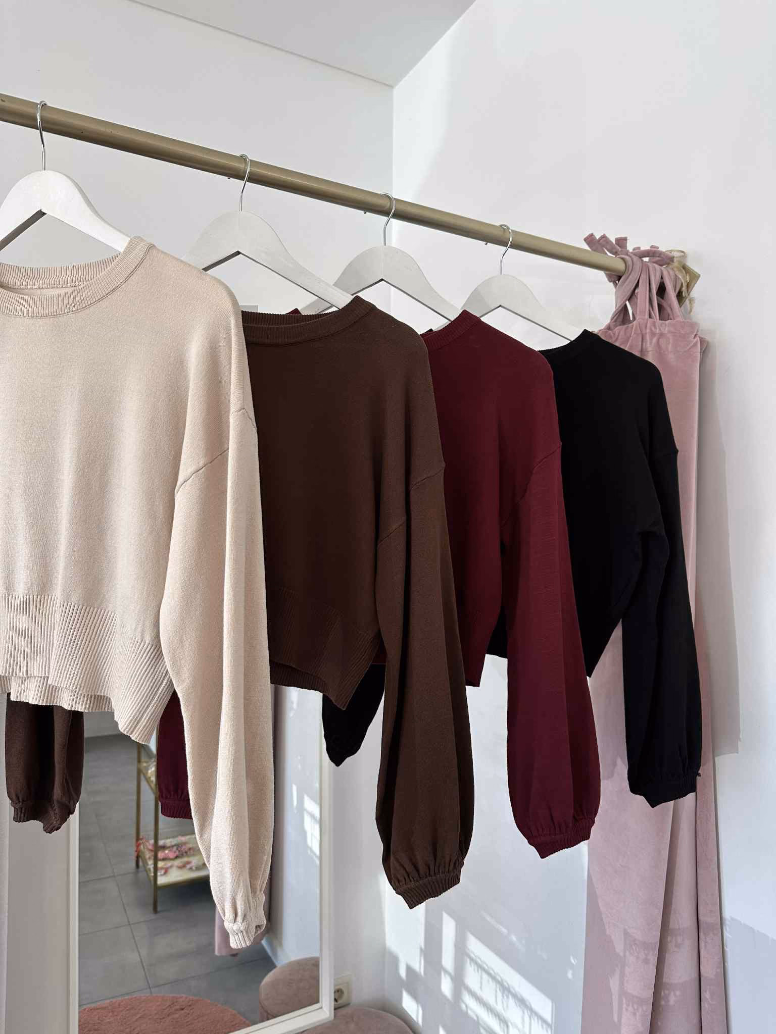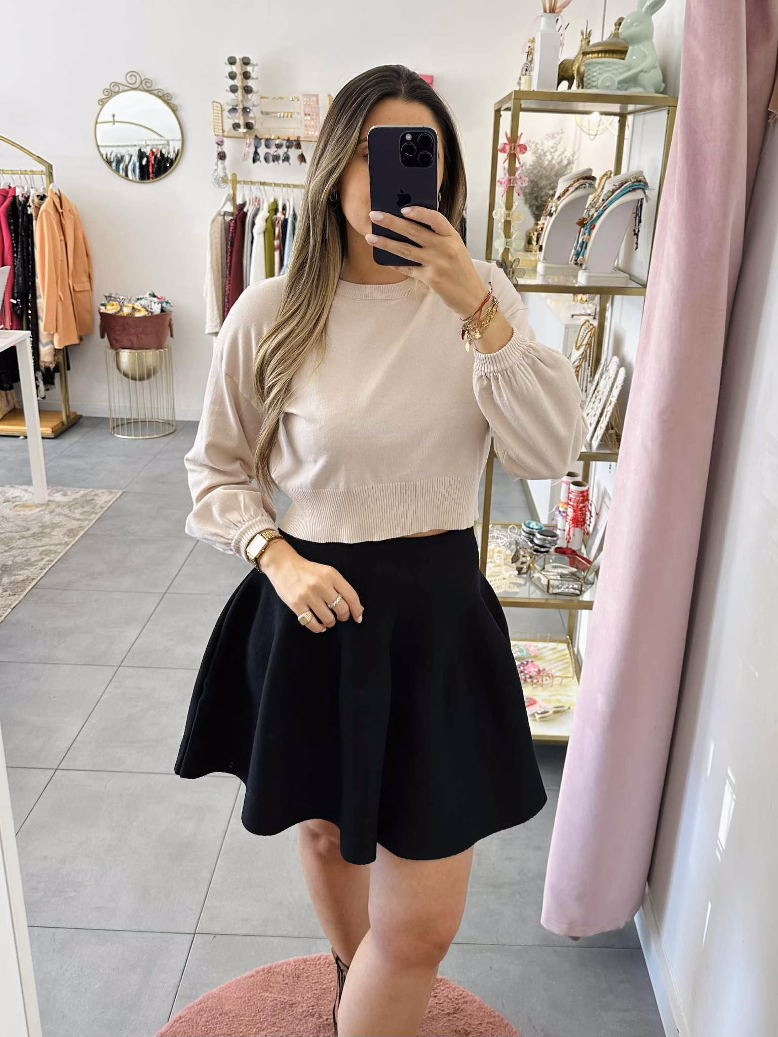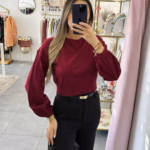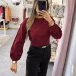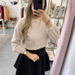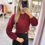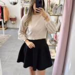 A modelo tem 1,73m e veste o tamanho M/L parte de cima e um 38/40 de parte de baixo.