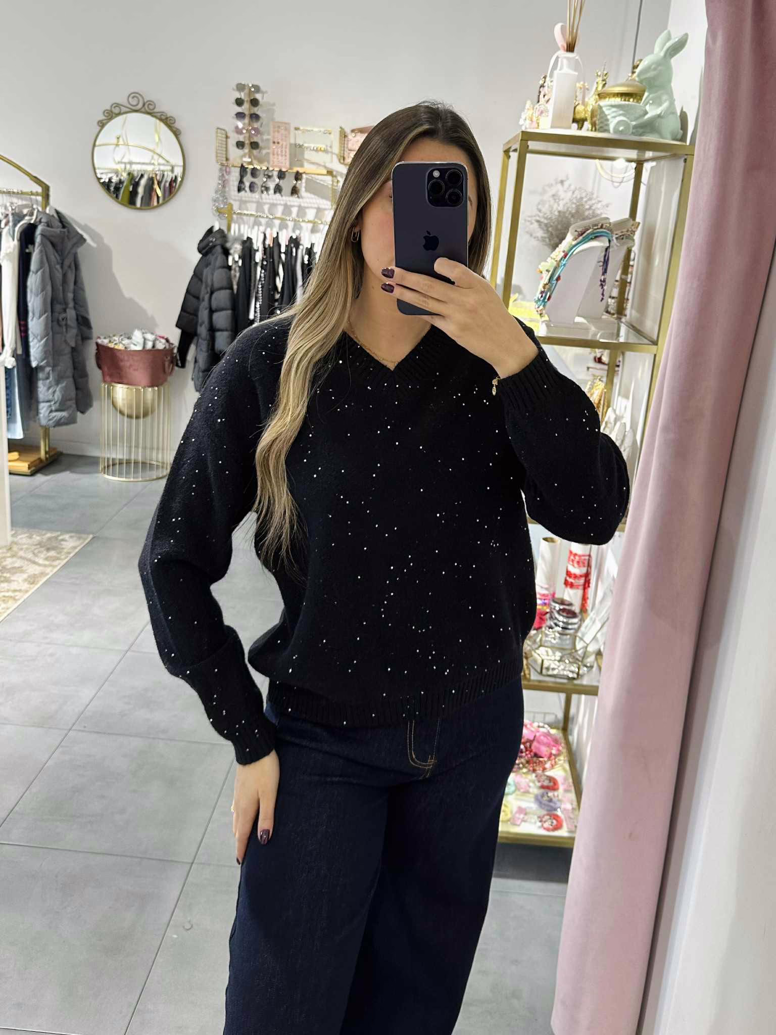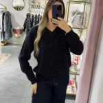 A modelo tem 1,73m e veste o tamanho M/L parte de cima e um 38/40 de parte de baixo.