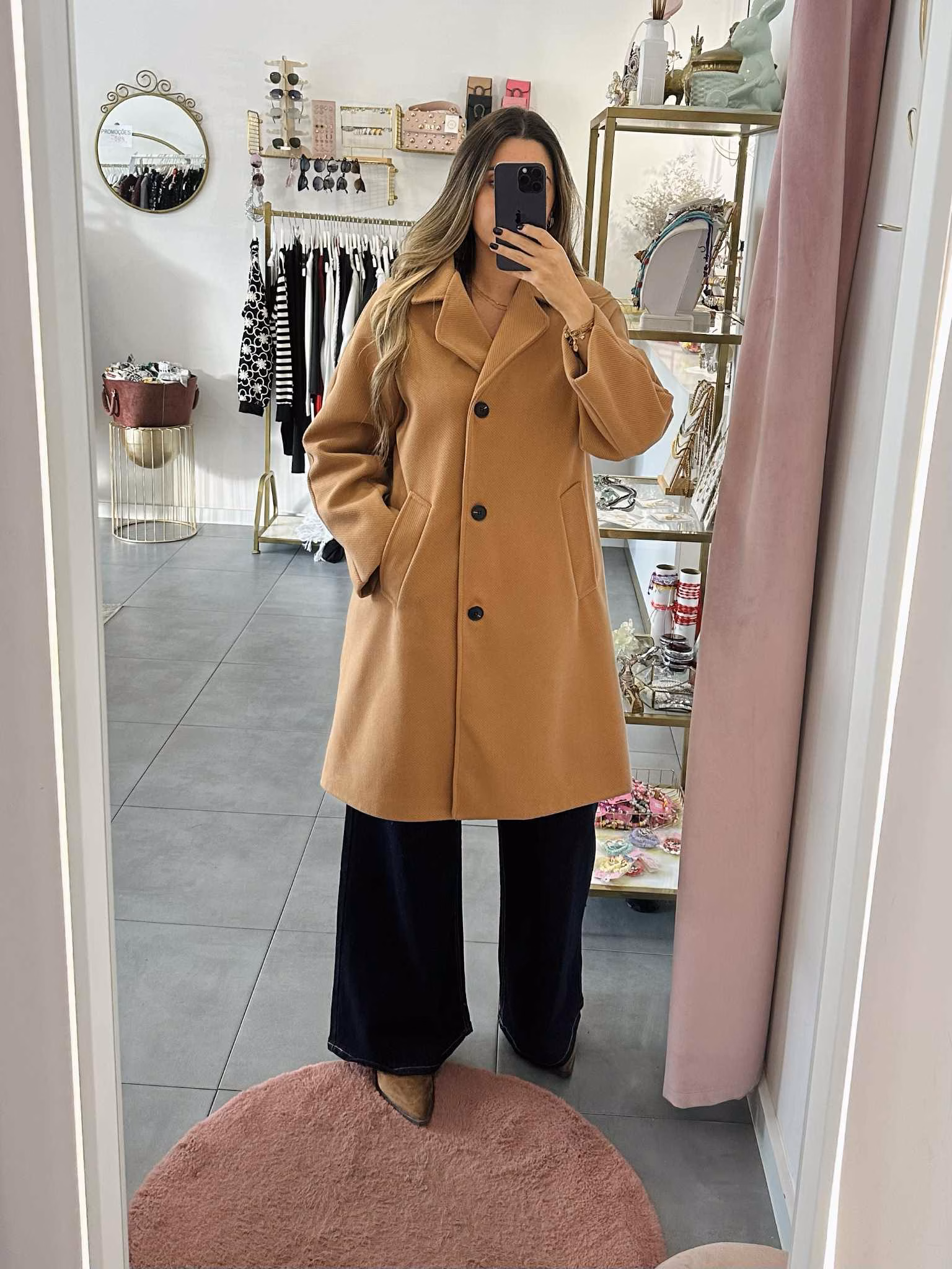 Casaco midi em fazenda com bolsos.