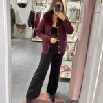 A modelo tem 1,73m e veste o tamanho M/L parte de cima e um 38/40 de parte de baixo.
