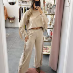 Conjunto de camisola e calças, o tecido é tipo fato-de-treino.
