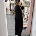 A modelo tem 1,73m e veste o tamanho M/L parte de cima e um 38/40 de parte de baixo.