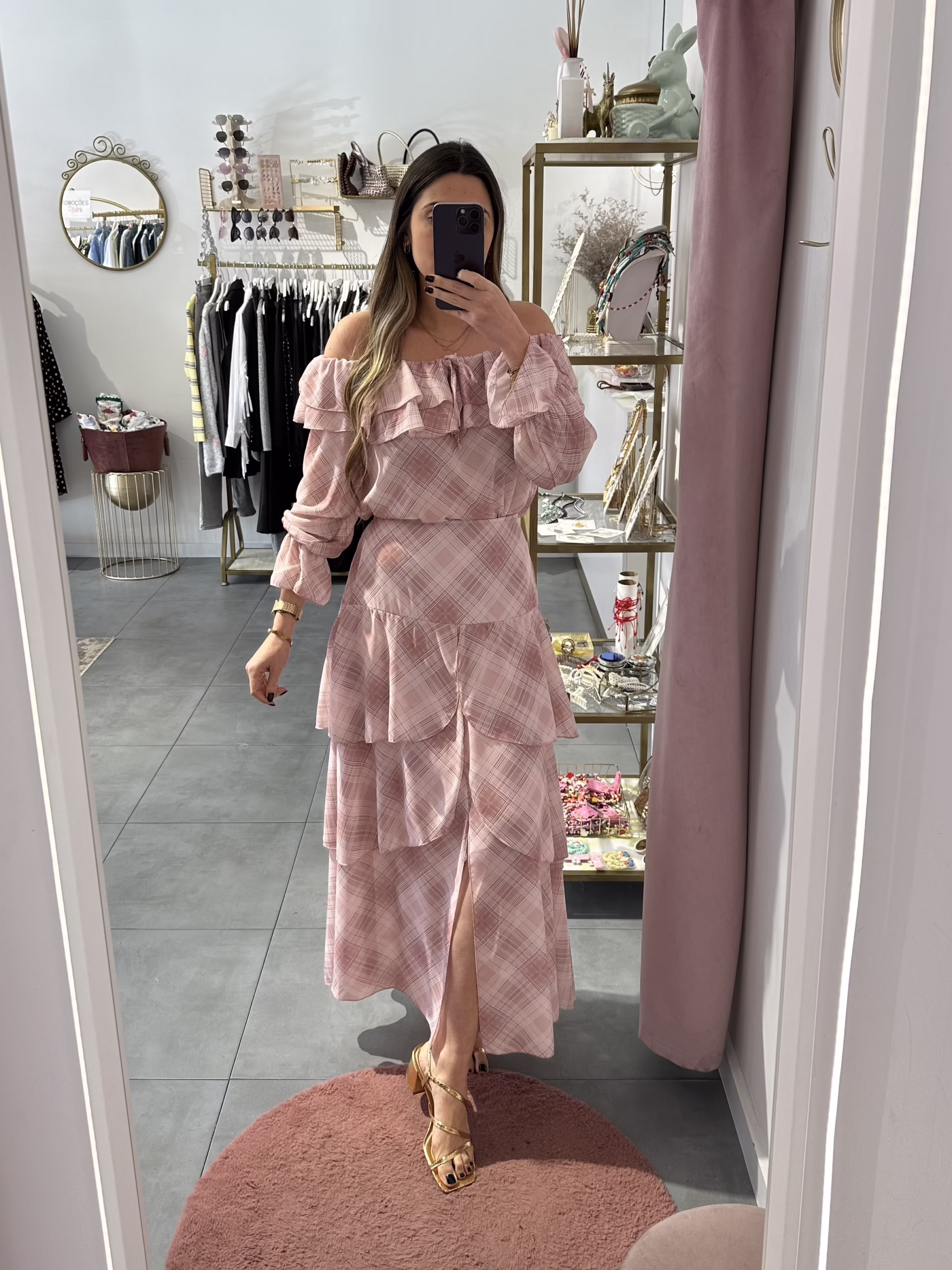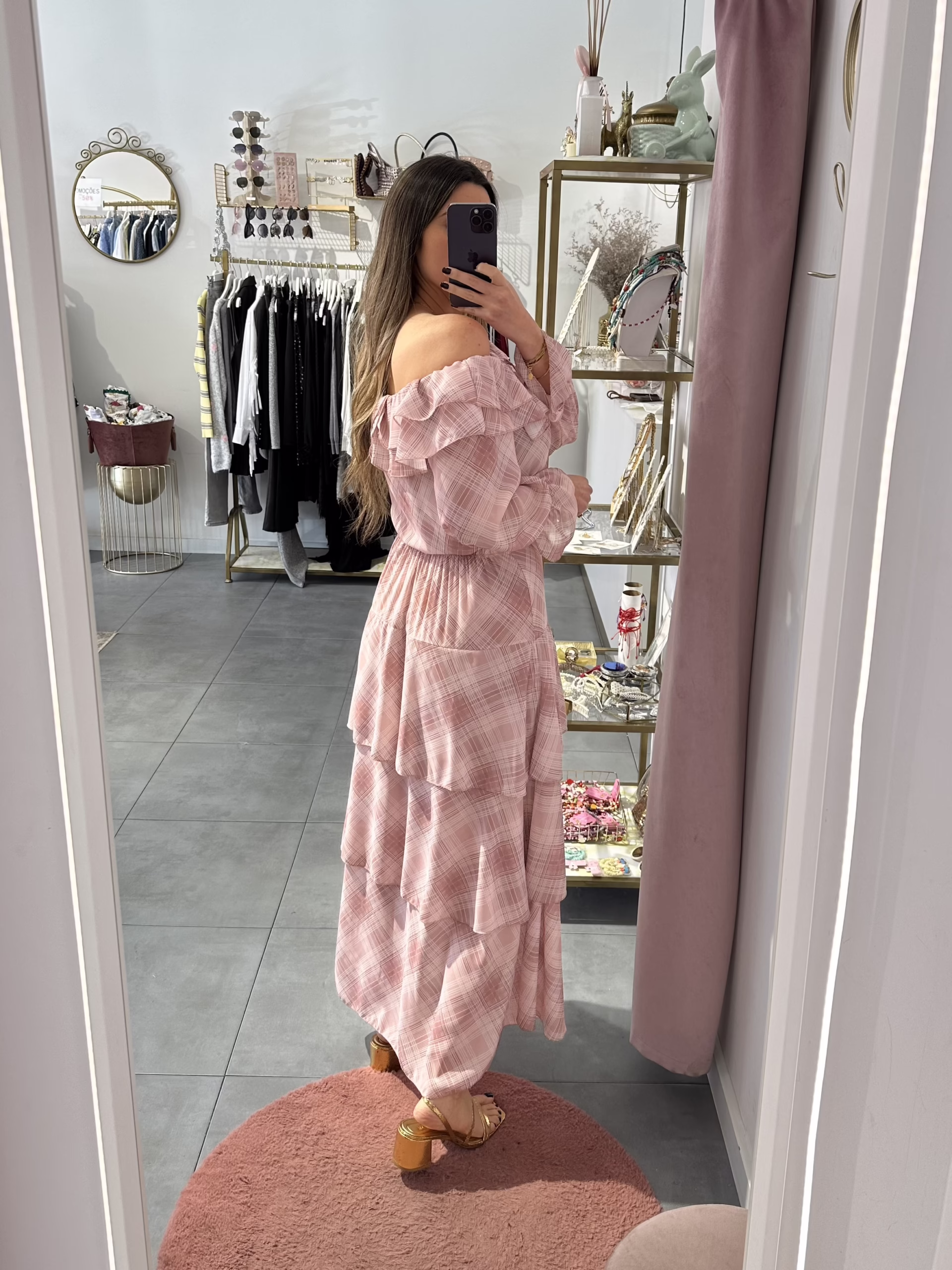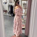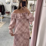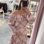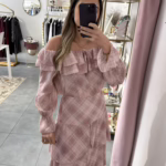 A modelo tem 1,73m e veste o tamanho M/L parte de cima e um 38/40 de parte de baixo.