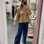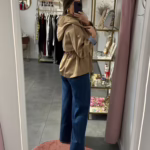 A modelo tem 1,73m e veste o tamanho M/L parte de cima e um 38/40 de parte de baixo.