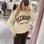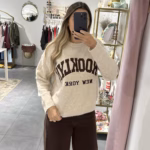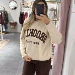 A modelo tem 1,73m e veste o tamanho M/L parte de cima e um 38/40 de parte de baixo.