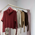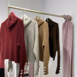 A modelo tem 1,73m e veste o tamanho M/L parte de cima e um 38/40 de parte de baixo.