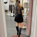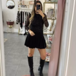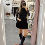 A modelo tem 1,73m e veste o tamanho M/L parte de cima e um 38/40 de parte de baixo.