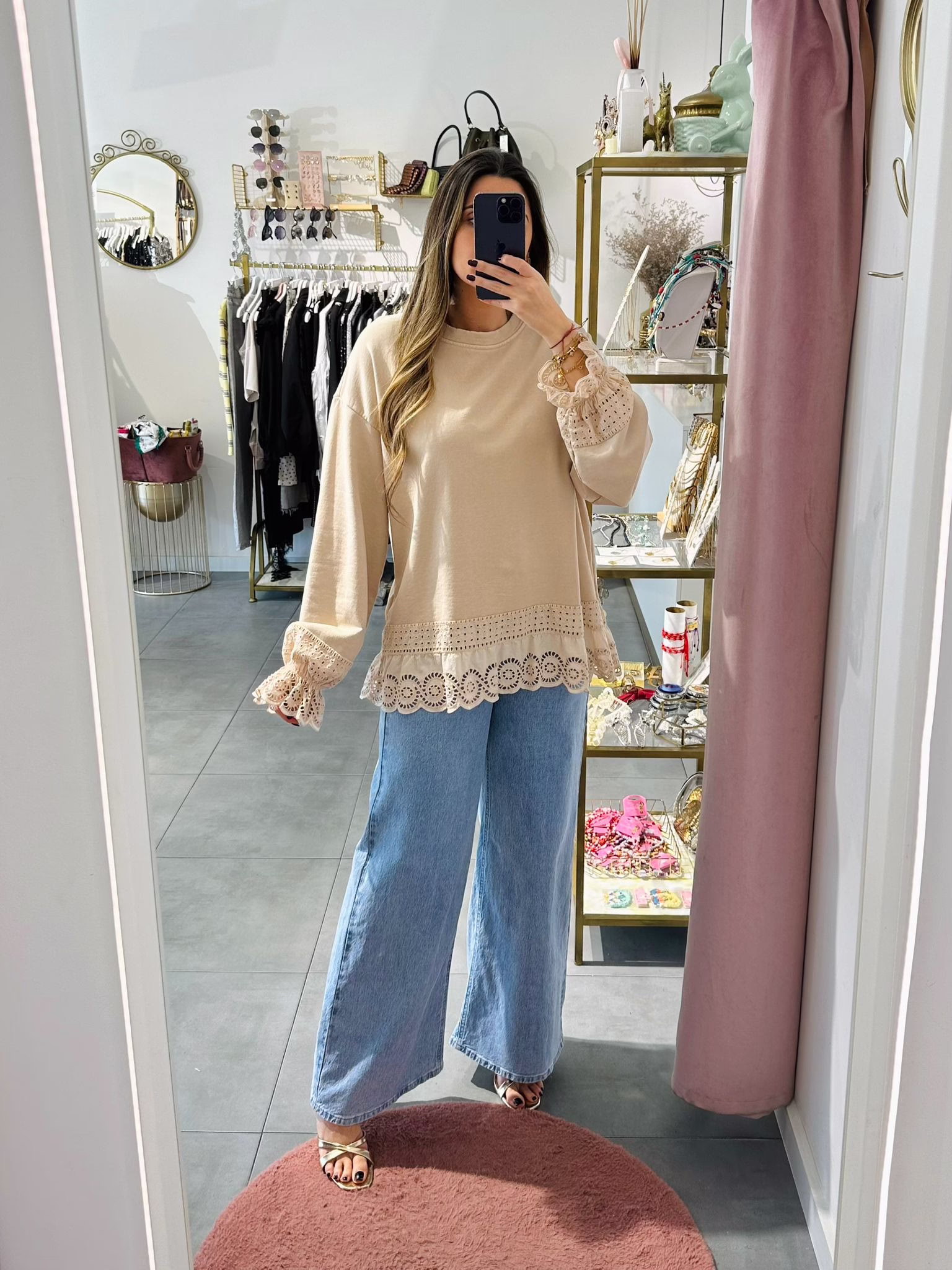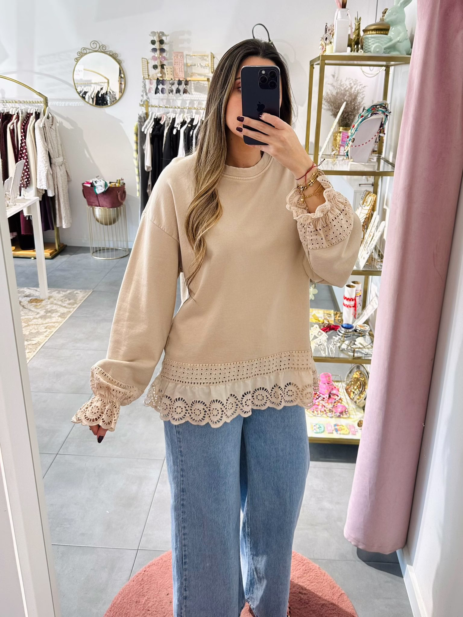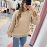 Sweat oversize em algodão com rendas.