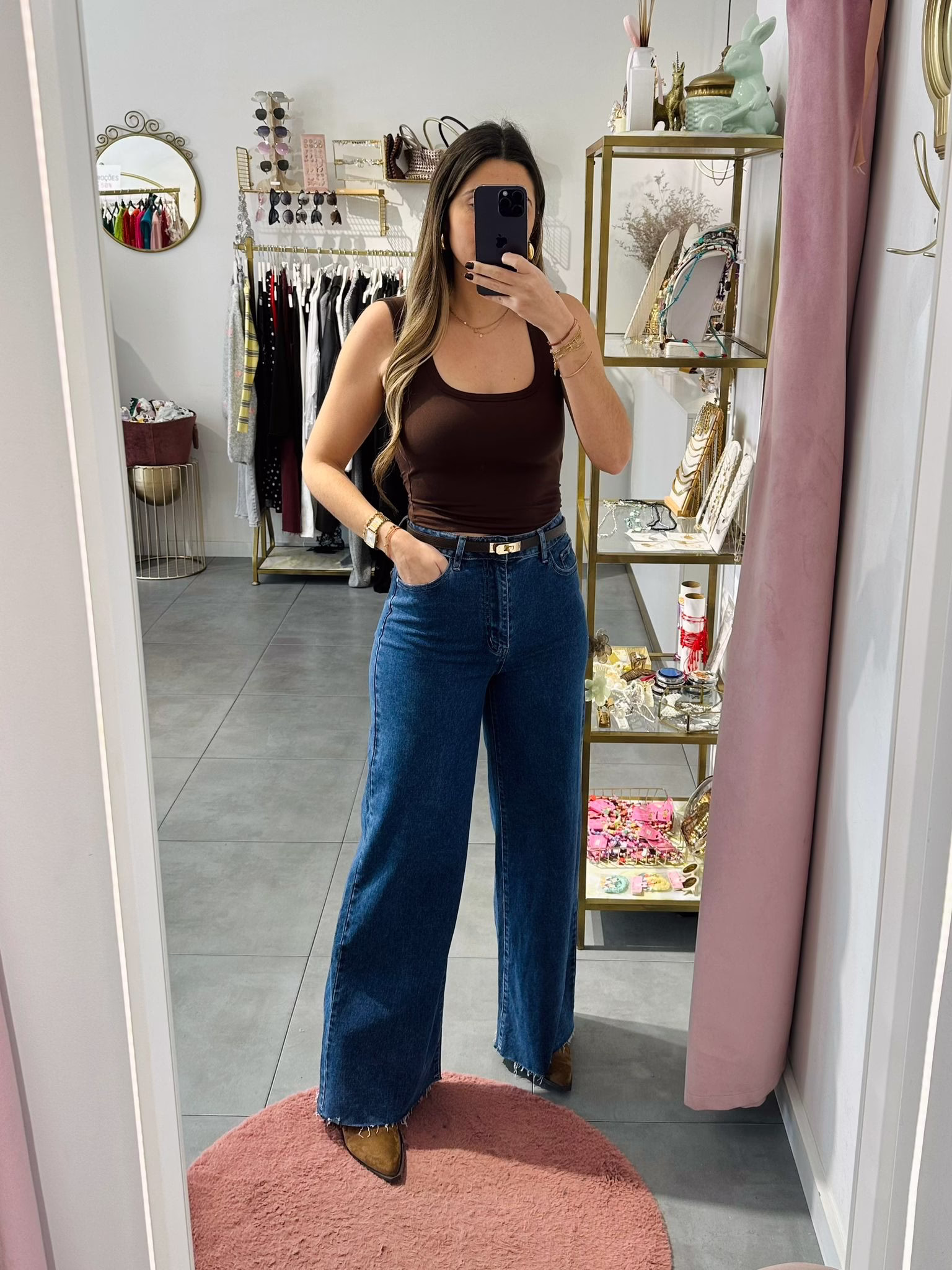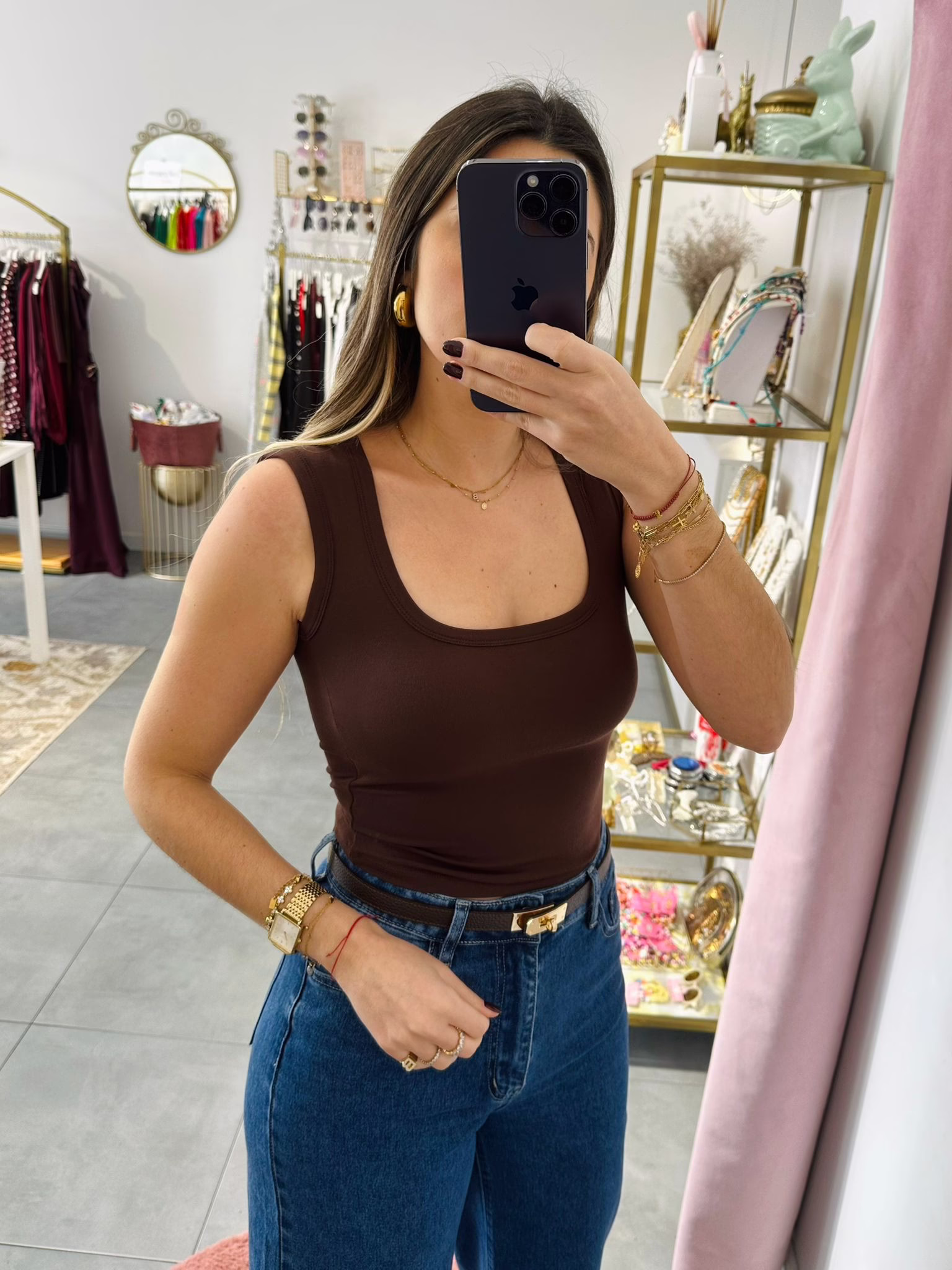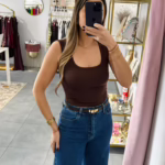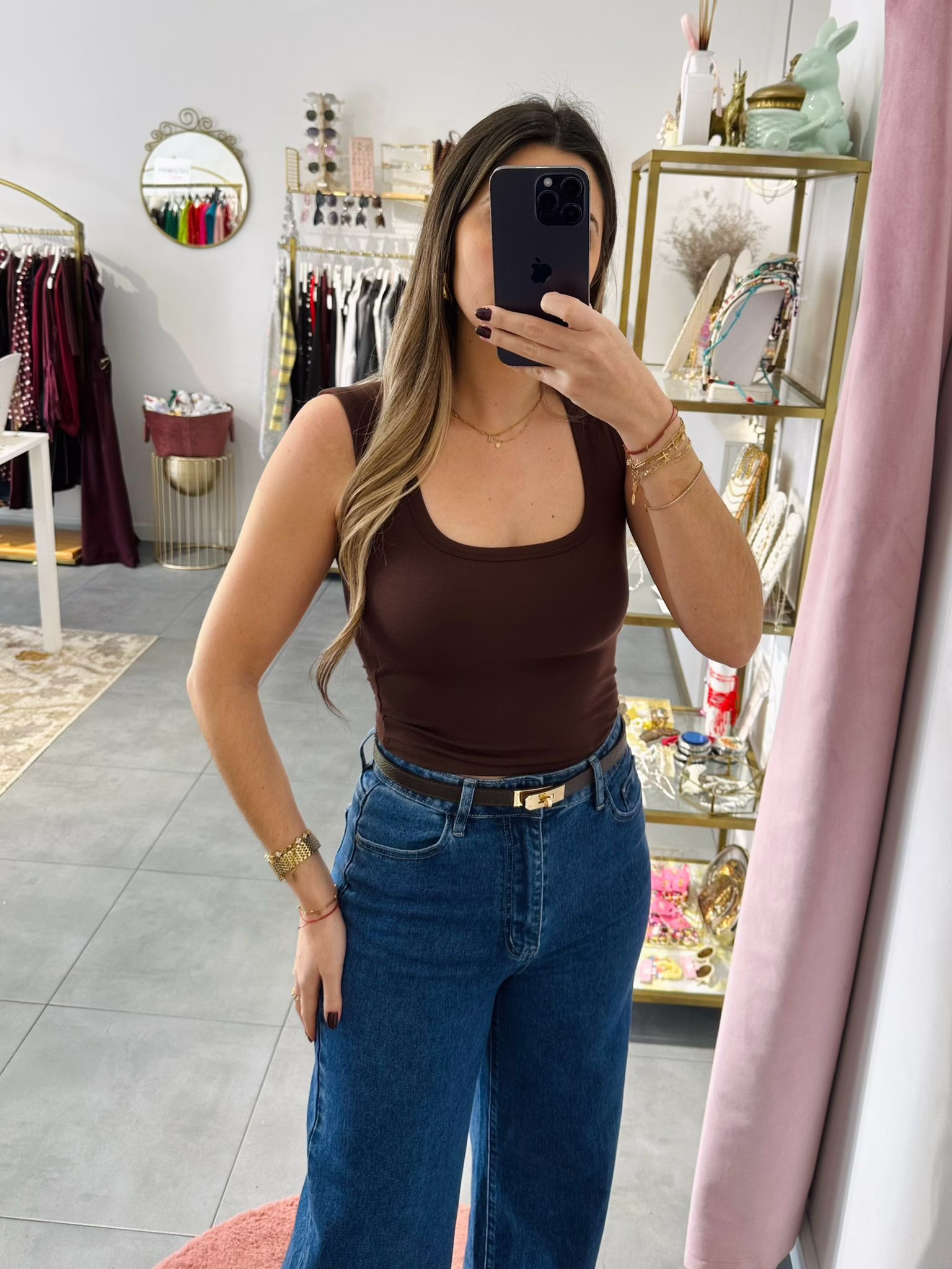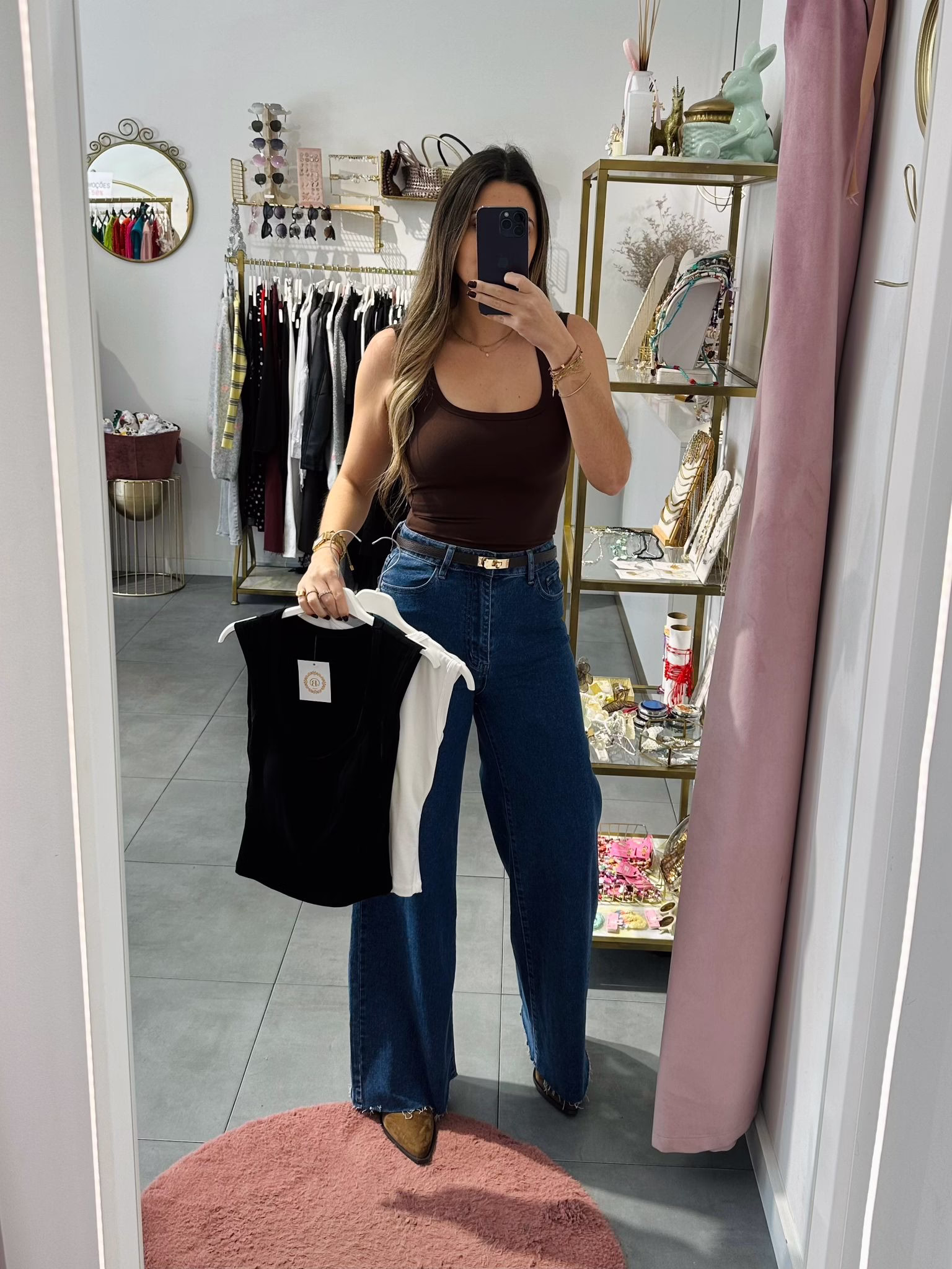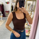 Top de decote quadrado e alça larga, tem copas incluída. É uma malha muito confortavél e bem consistente.