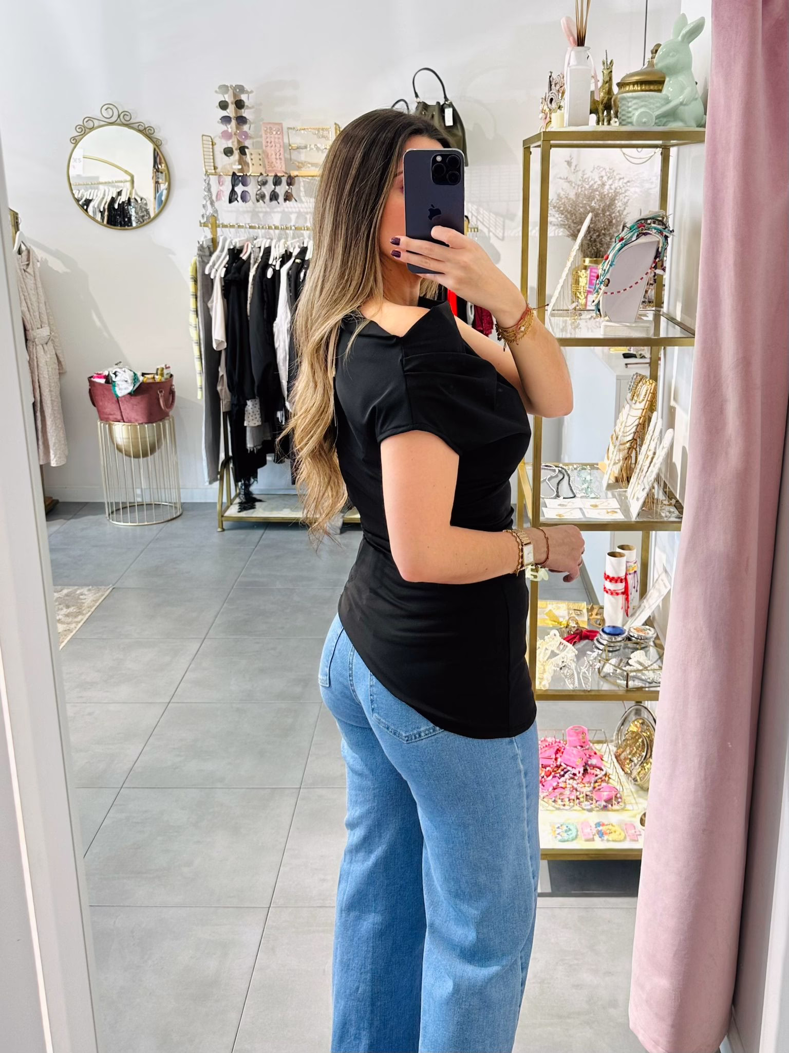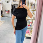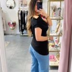 A modelo tem 1,73m e veste o tamanho M/L parte de cima e um 38/40 de parte de baixo.