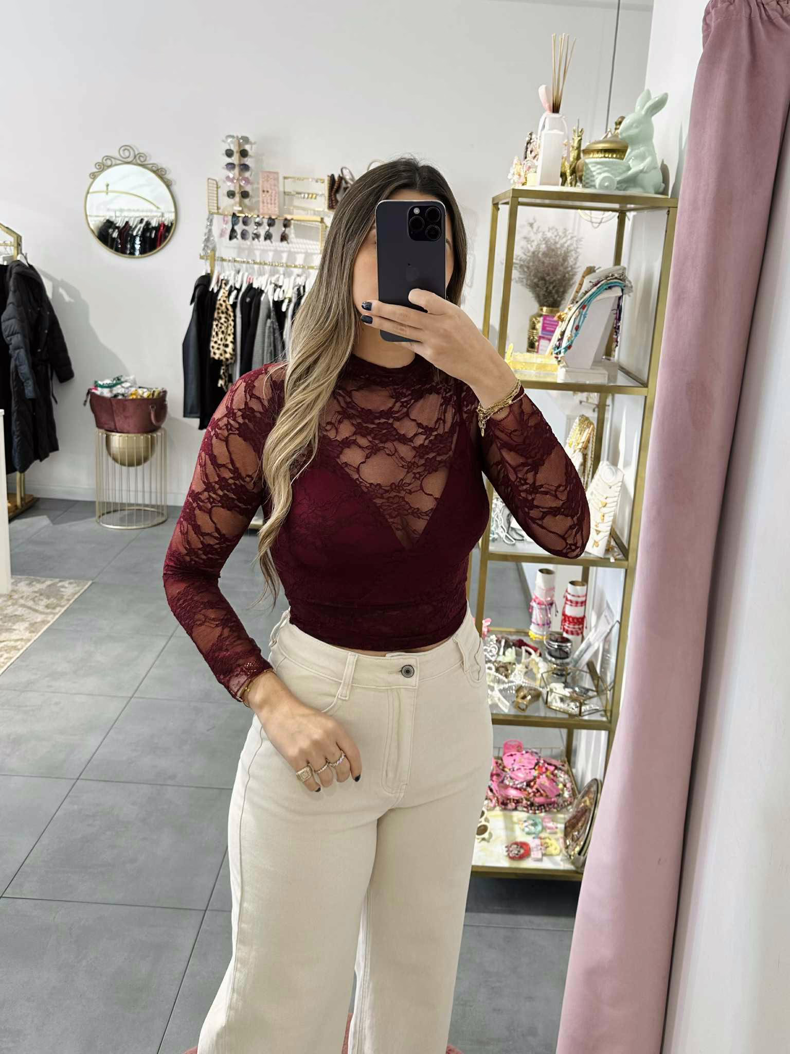 Top renda com top incorporado.