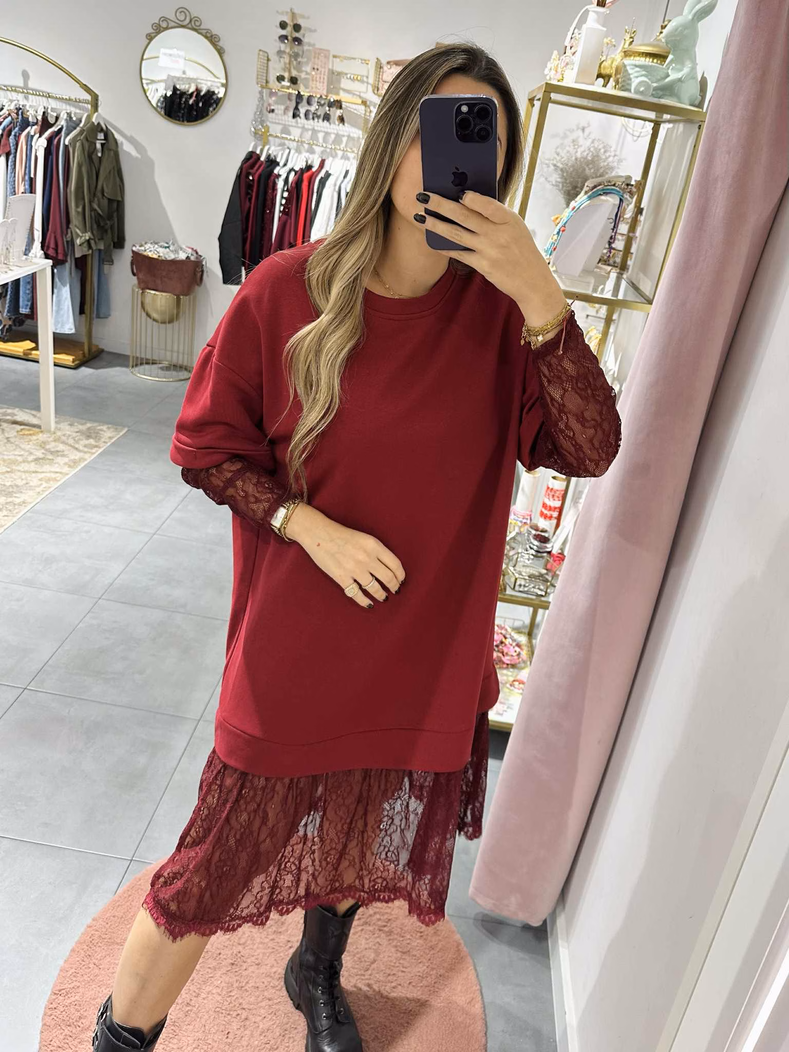 Início  /  Loja  /  Coleção, Vestidos & Macacões  /  Vestido Algodão c/Renda Bordo