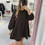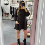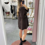 A modelo tem 1,73m e veste o tamanho M/L parte de cima e um 38/40 de parte de baixo.