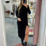 A modelo tem 1,73m e veste o tamanho M/L parte de cima e um 38/40 de parte de baixo.