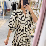 A modelo tem 1,73m e veste o tamanho M/L parte de cima e um 38/40 de parte de baixo.