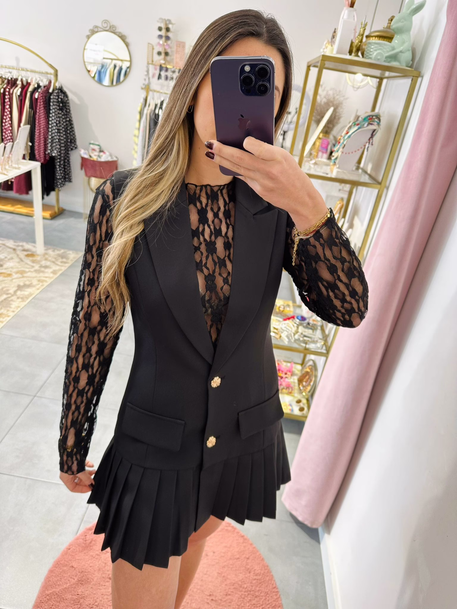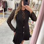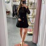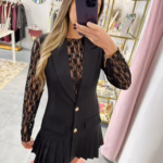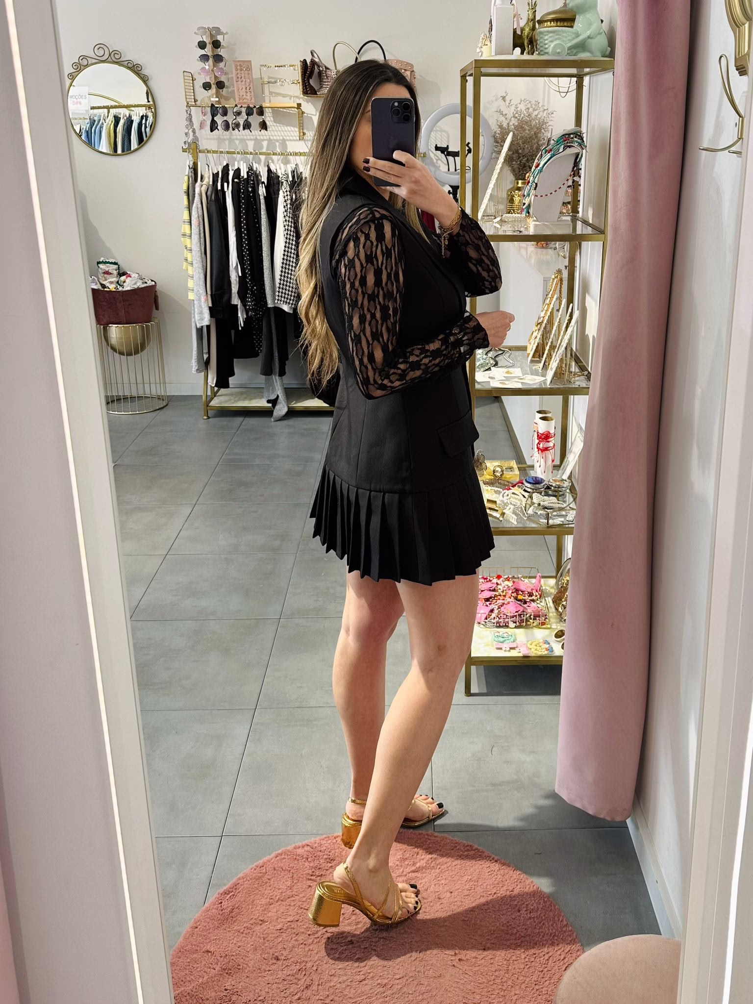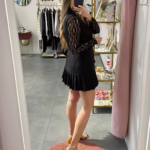 A modelo tem 1,73m e veste o tamanho M/L parte de cima e um 38/40 de parte de baixo.