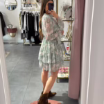 A modelo tem 1,73m e veste o tamanho M/L parte de cima e um 38/40 de parte de baixo.