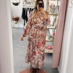 A modelo tem 1,73m e veste o tamanho M/L parte de cima e um 38/40 de parte de baixo.