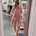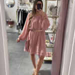 A modelo tem 1,73m e veste o tamanho M/L parte de cima e um 38/40 de parte de baixo.
