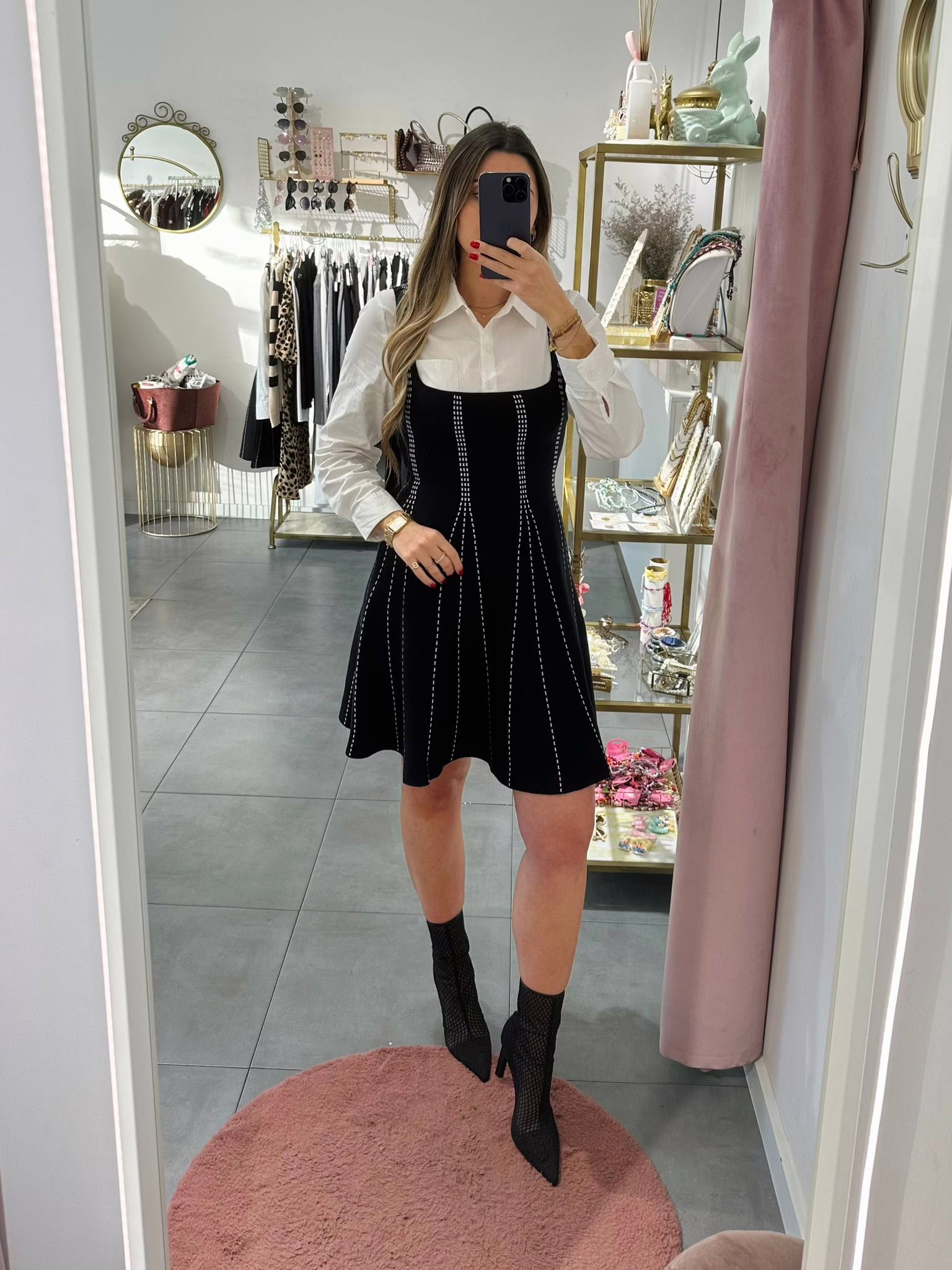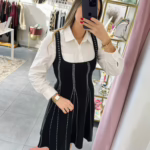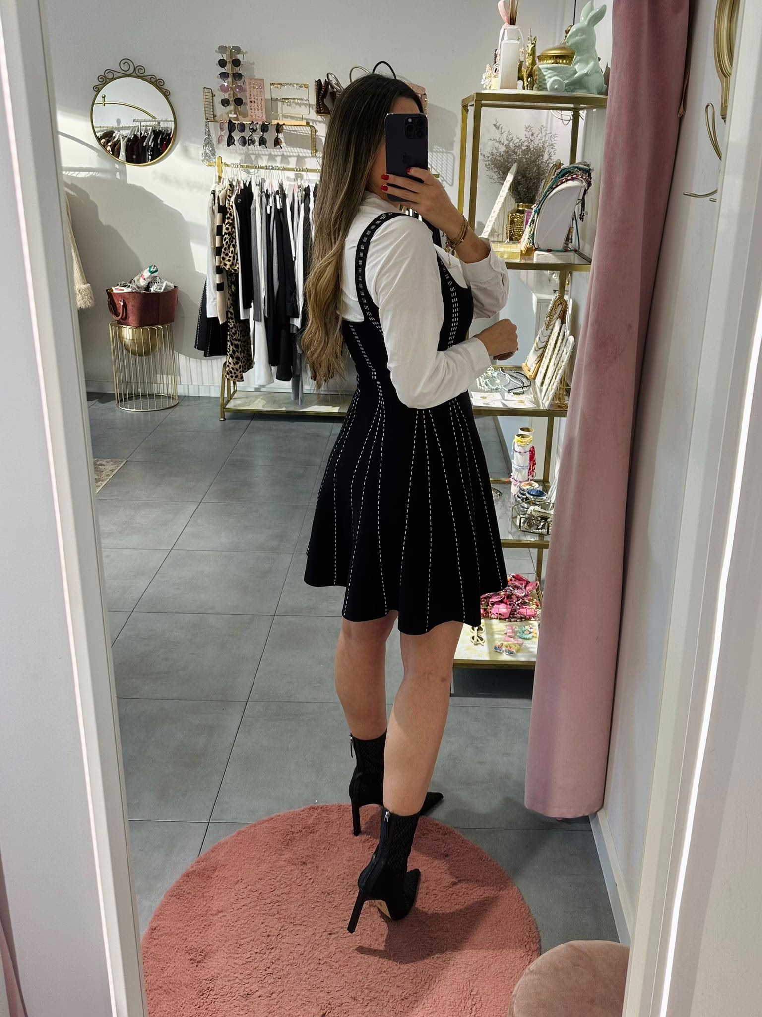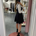 A modelo tem 1,73m e veste o tamanho M/L parte de cima e um 38/40 de parte de baixo.