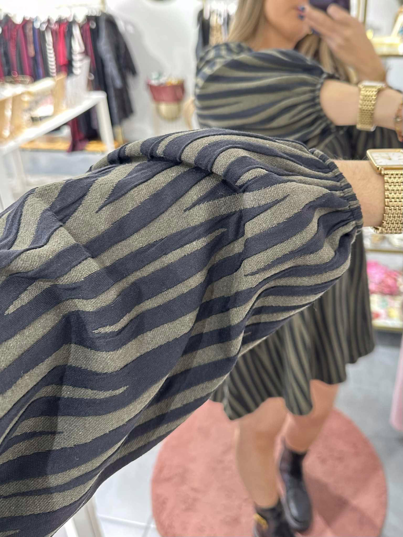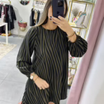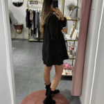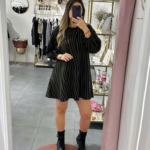 A modelo tem 1,73m e veste o tamanho M/L parte de cima e um 38/40 de parte de baixo.