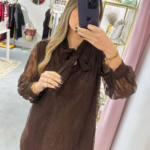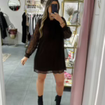 A modelo tem 1,73m e veste o tamanho M/L parte de cima e um 38/40 de parte de baixo.