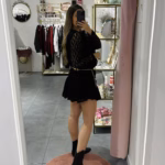 A modelo tem 1,73m e veste o tamanho M/L parte de cima e um 38/40 de parte de baixo.