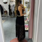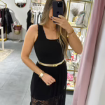 Vestido com peito em algodão e saia em renda.