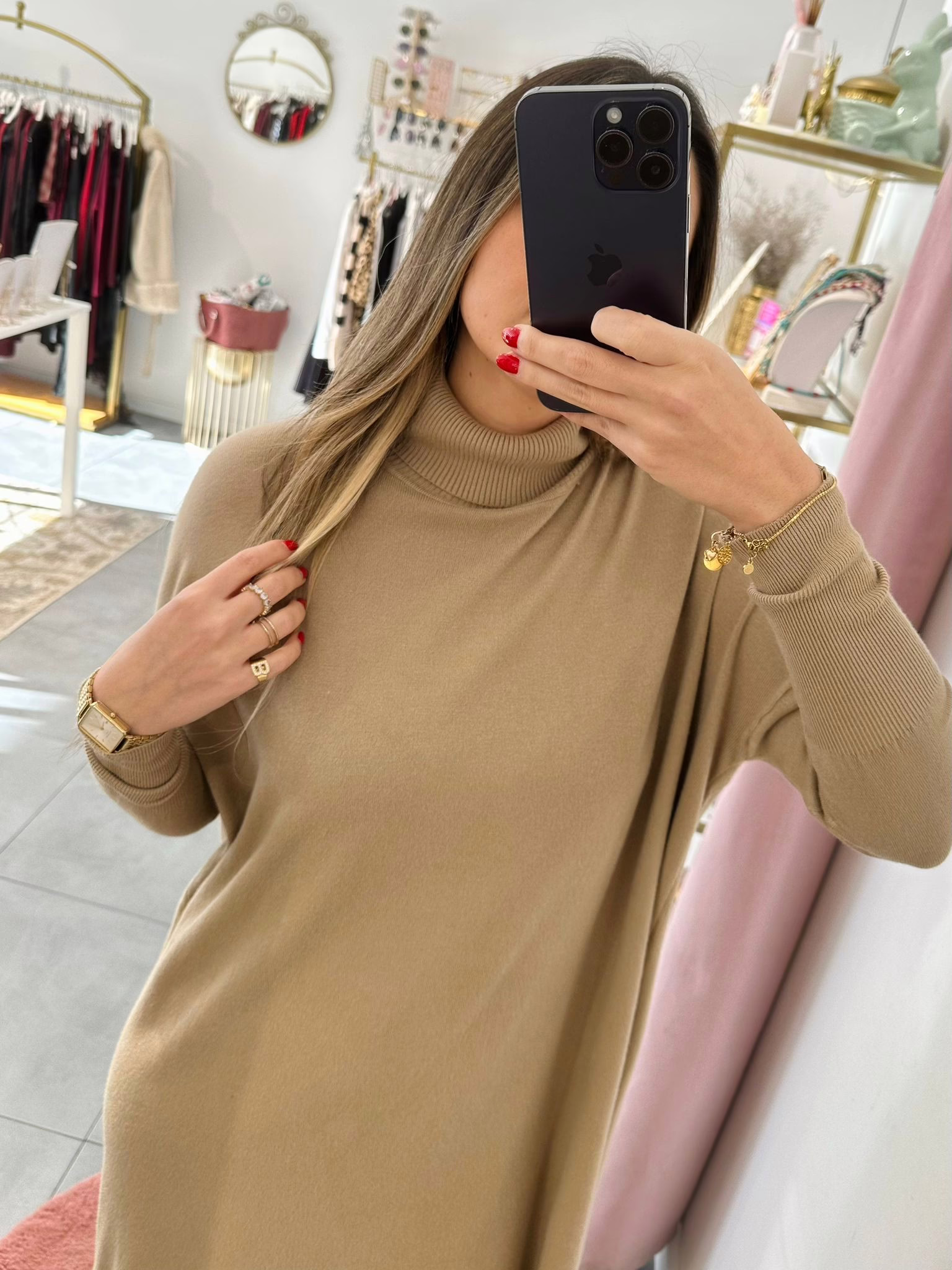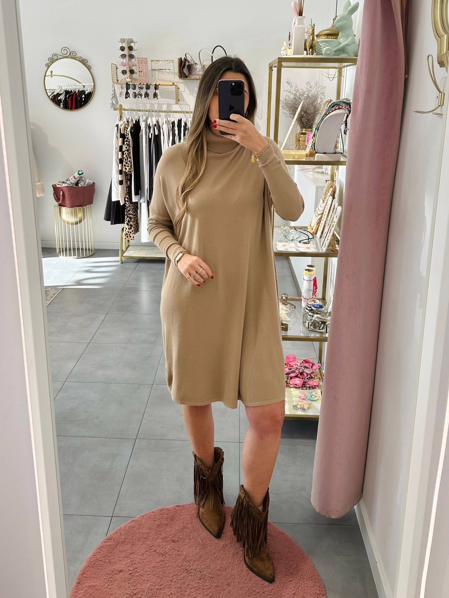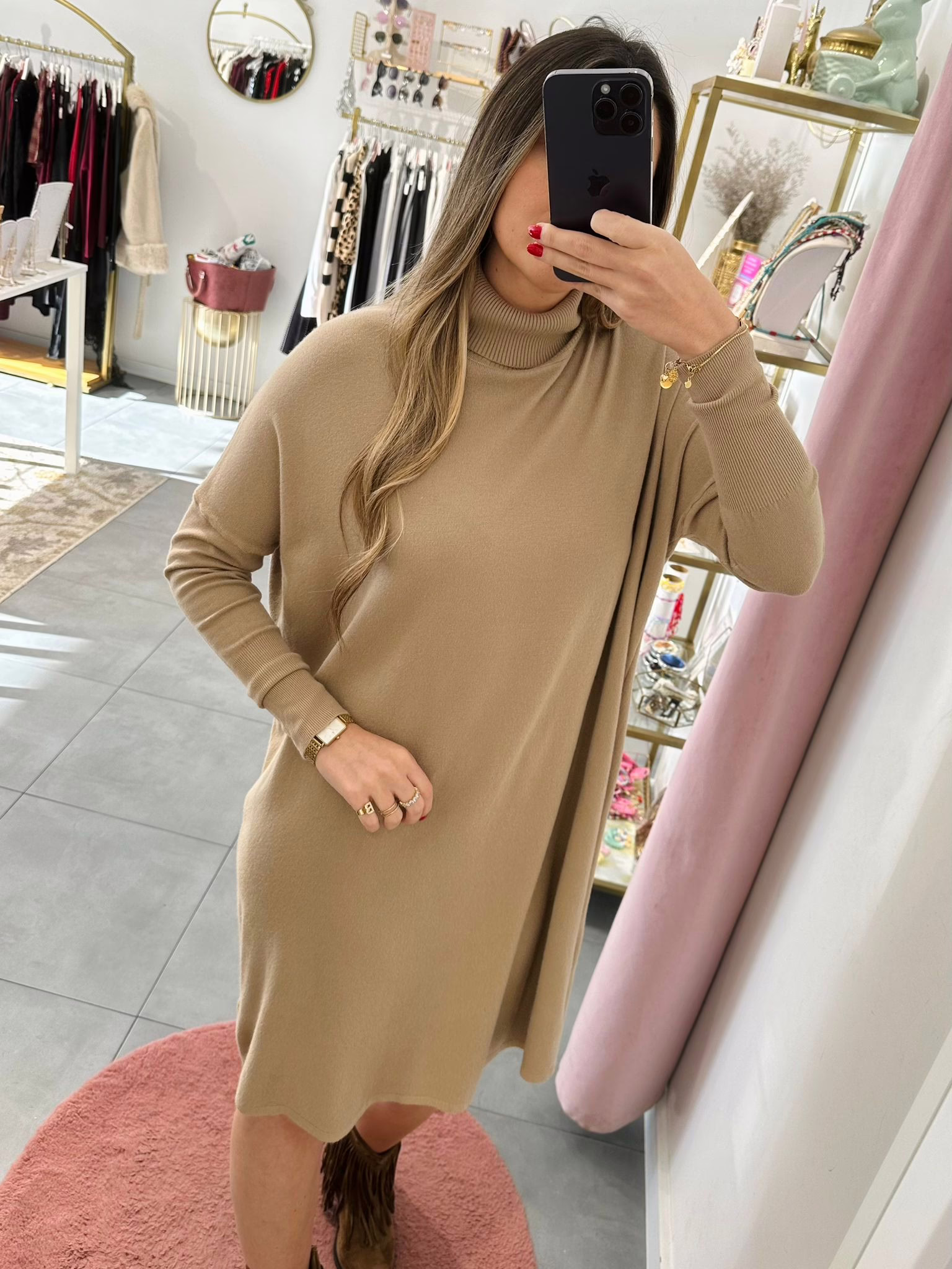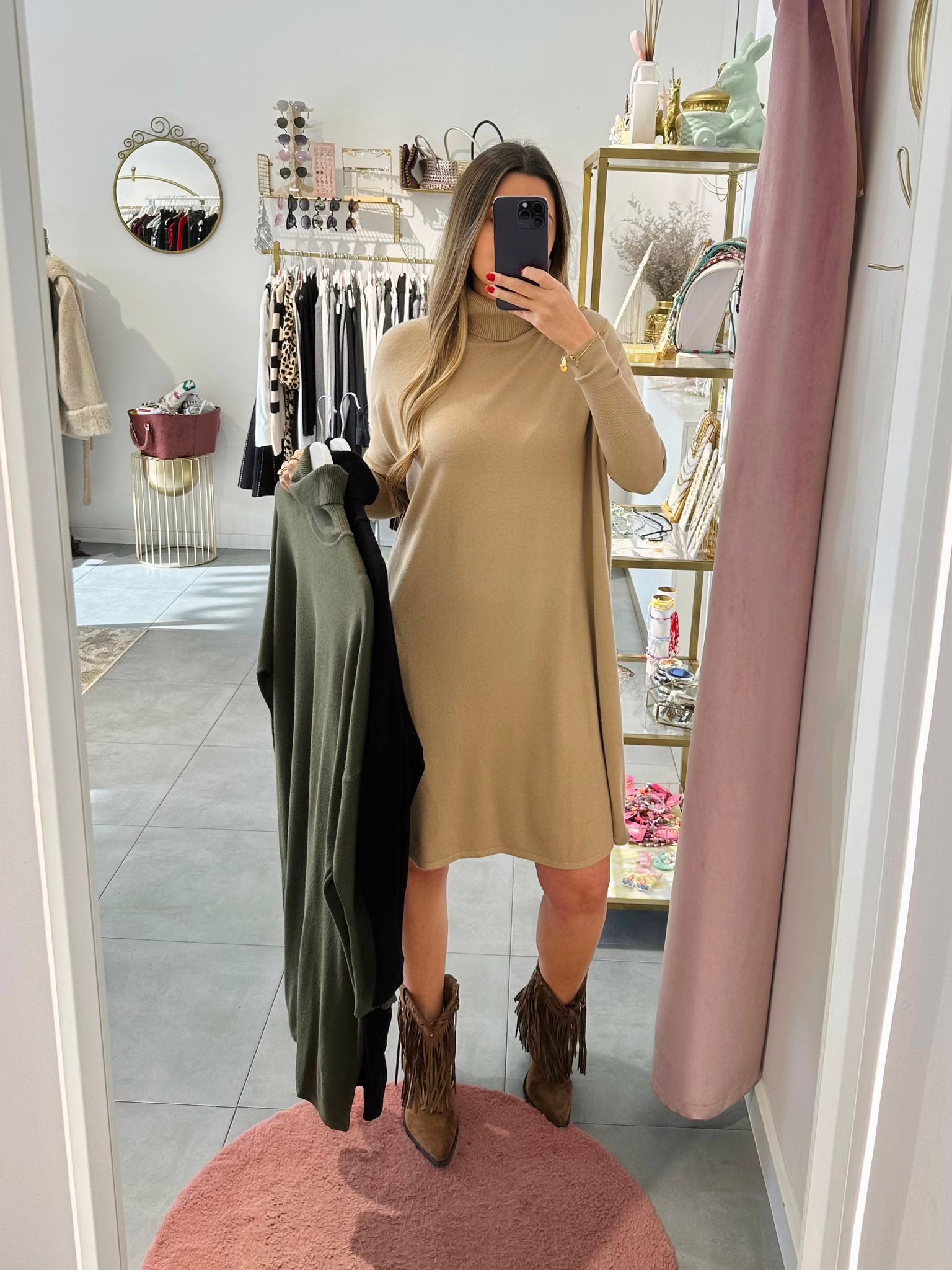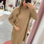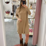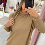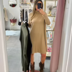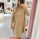 Vestidos em malha fina e com gola alta.