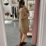 A modelo tem 1,73m e veste o tamanho M/L parte de cima e um 38/40 de parte de baixo.